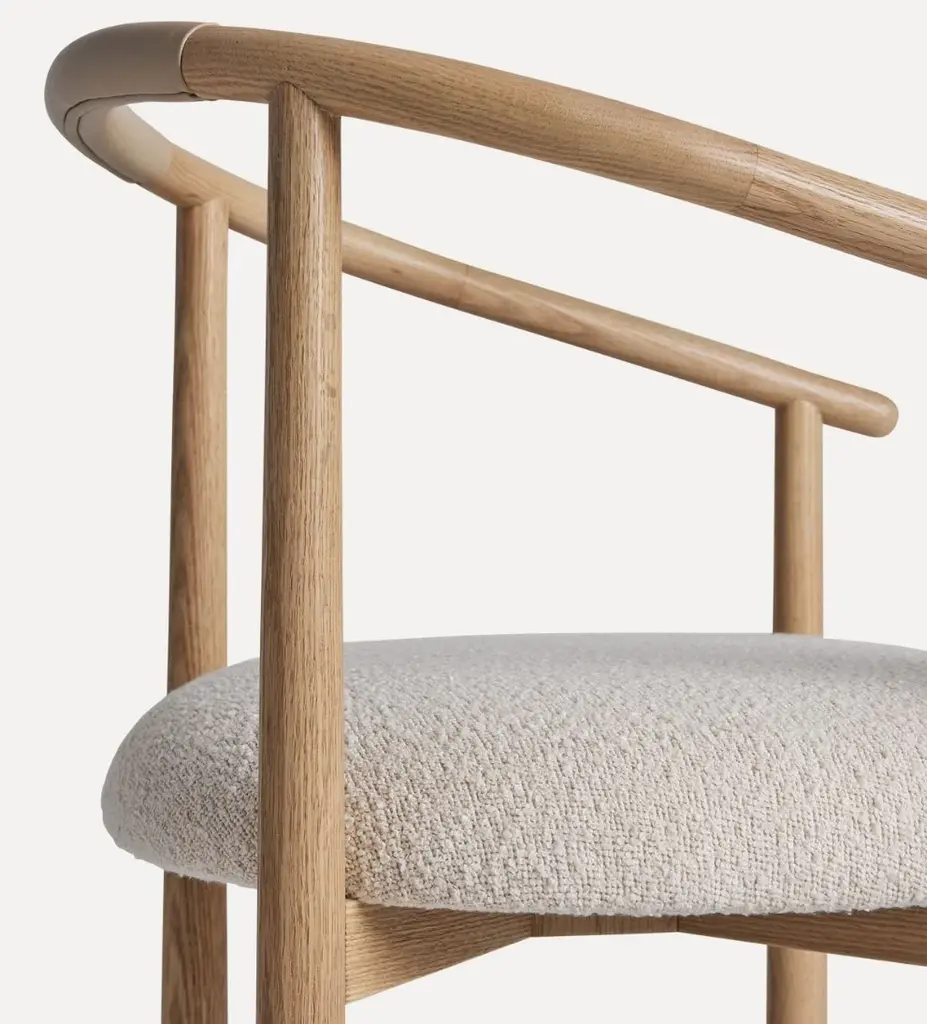 Add some curve appeal to your dining room with the Lily Dining Chair! This elegant and sleek design adds lots of style while keeping this minimal. The leather detail and bouclé add beautiful subtle details to your space that elevate and inspire. Dimensions: 24" L x 21" W x 32" H Seat Height: 18" Seat Depth: 21.25" Arm Height: 24"Materials: Natural White Oak & Boucle with leather detailWeight: 17.16 lbs