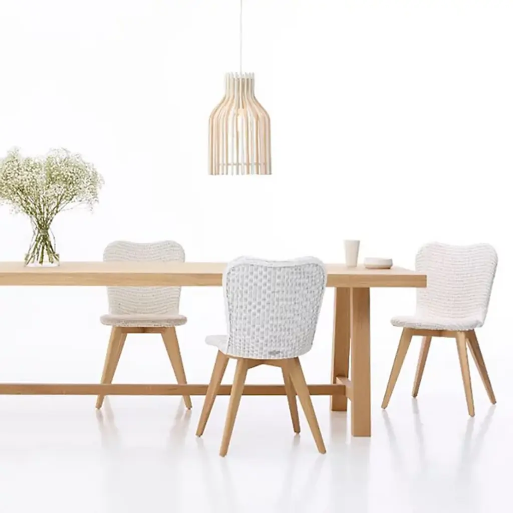 Add a level of sophistication to your dining room space with the Vincent Sheppard Lily Dining Chair. This sophisticated dining room chair is crafted with an aluminum frame and strong base legs, fusing stability with style. Using twisted kraft paper around metal wire, the beautiful loom weave exterior makes for a dynamic outward appearance. The beautiful heart-shaped back provides support and allows for full, uninterrupted comfort while seated and dining.