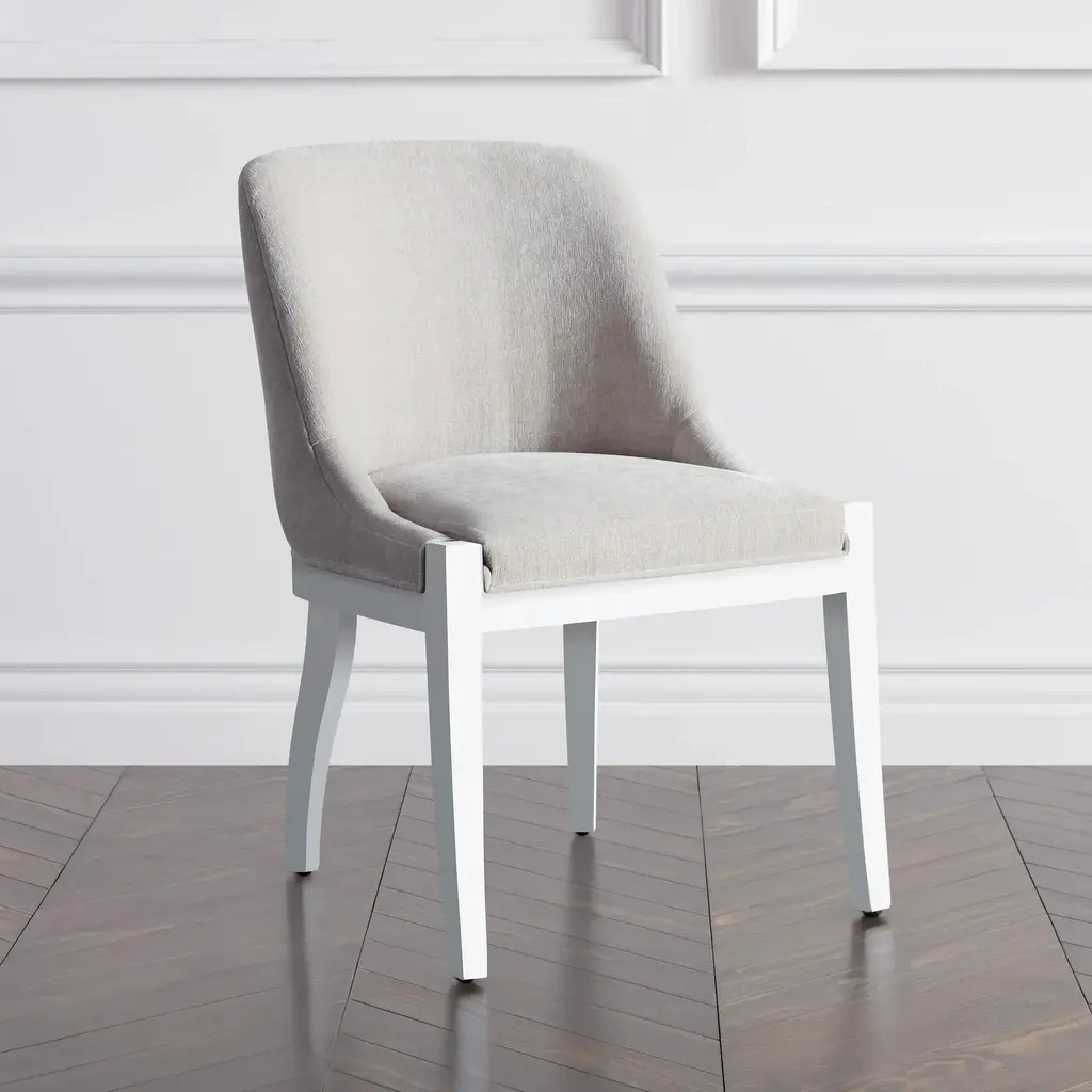 Framed in kiln-dried hardwood with a curvaceous silhouette and neatly tailored upholstery, our Lily chair brings modern glamour to the dining room, while its cushy foam-and-fiber fill offers long-lasting comfort and support. Shown in Kenley Chenille Moondust.Z Gallerie ExclusiveCustom Orders: Custom Furniture is manufactured especially for you, which is why we do not accept cancellations, exchanges, or returns.