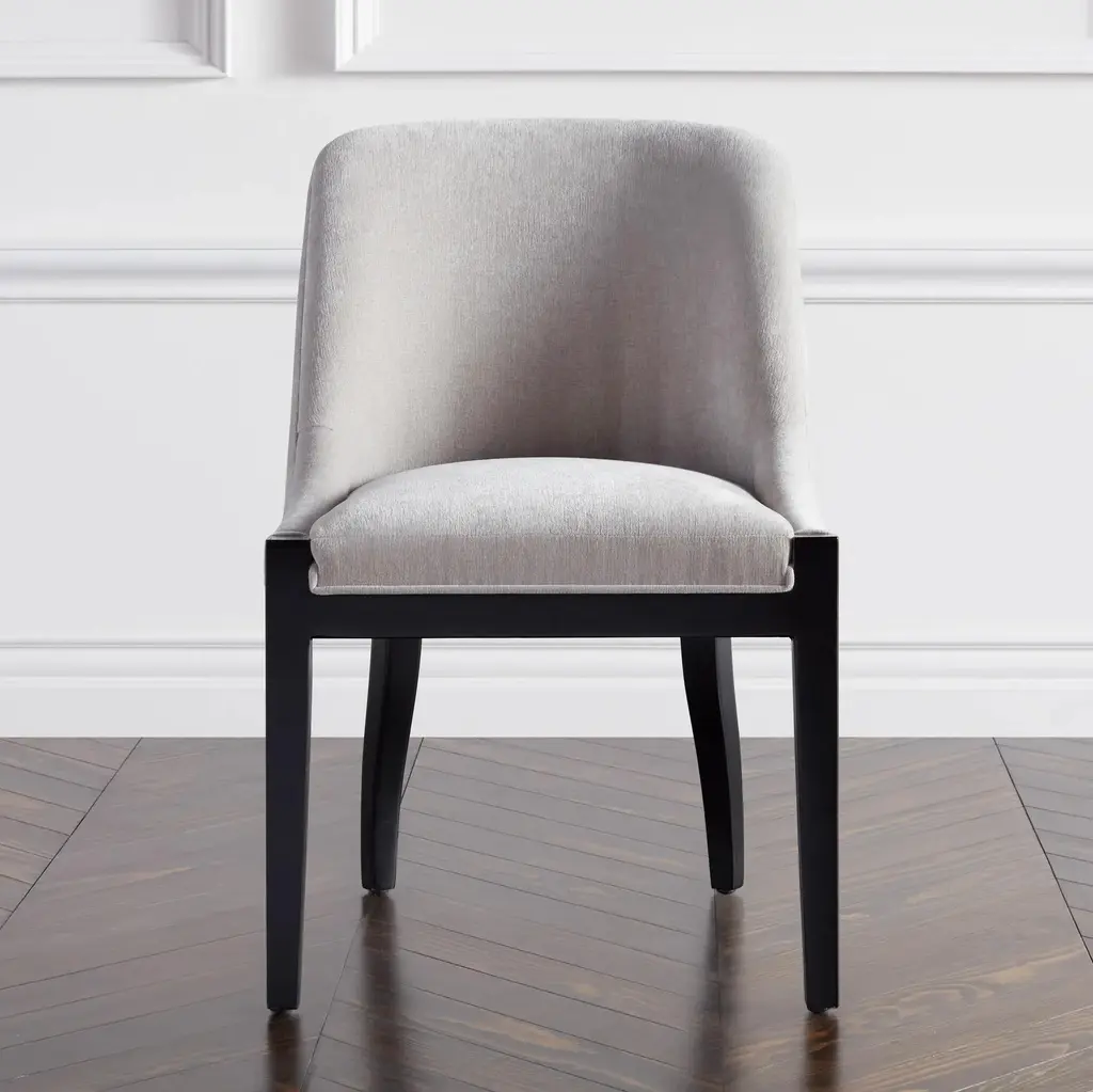 Framed in kiln-dried hardwood with a curvaceous silhouette and neatly tailored upholstery, our Lily chair brings modern glamour to the dining room, while its cushy foam-and-fiber fill offers long-lasting comfort and support. Shown in Kenley Chenille Moondust.Z Gallerie ExclusiveCustom Orders: Custom Furniture is manufactured especially for you, which is why we do not accept cancellations, exchanges, or returns.