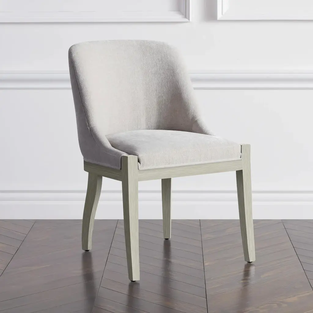Framed in kiln-dried hardwood with a curvaceous silhouette and neatly tailored upholstery, our Lily chair brings modern glamour to the dining room, while its cushy foam-and-fiber fill offers long-lasting comfort and support. Shown in Kenley Chenille Moondust.Z Gallerie ExclusiveCustom Orders: Custom Furniture is manufactured especially for you, which is why we do not accept cancellations, exchanges, or returns.
