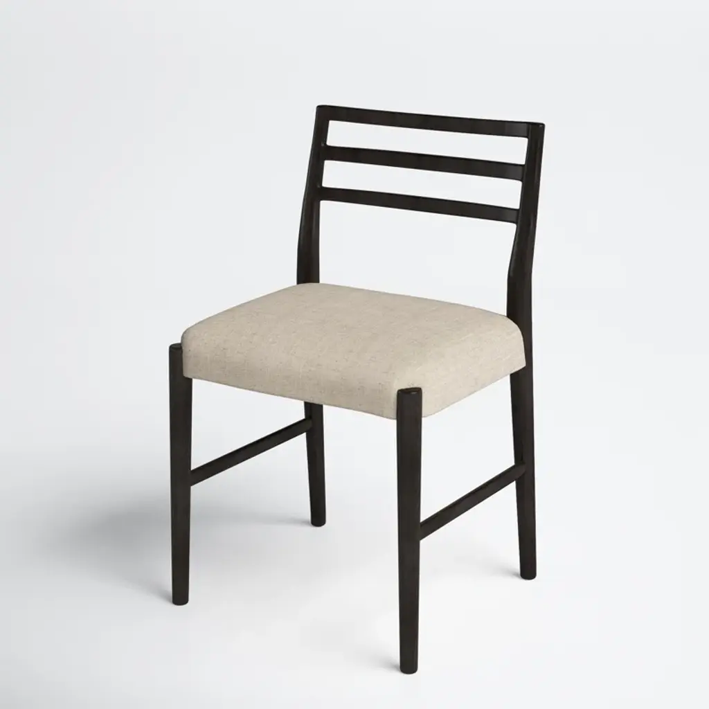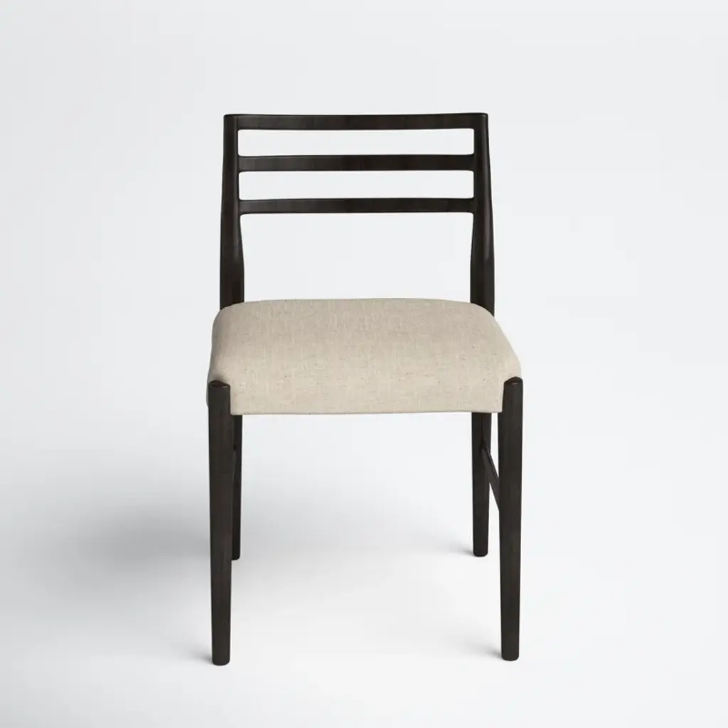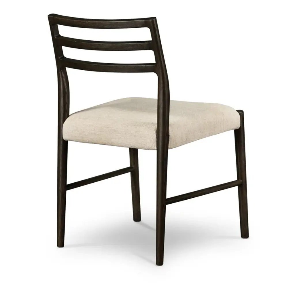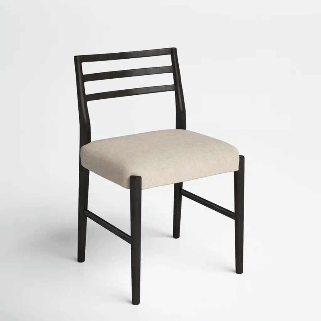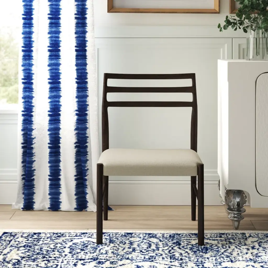 Modern materials redefine the classic ladder back silhouette in this elegant, sculptural side chair. It's made from a scrubbed oak frame with a black finish for a clean, open look with natural depth. This chair sits on four straight legs and has a foam-filled seat upholstered in a blend of cotton and linen. The ivory hue contrasts the black frame for a trend-forward monochromatic look we love. Best of all, this side chair comes fully assembled and backed by a 1-year warranty.