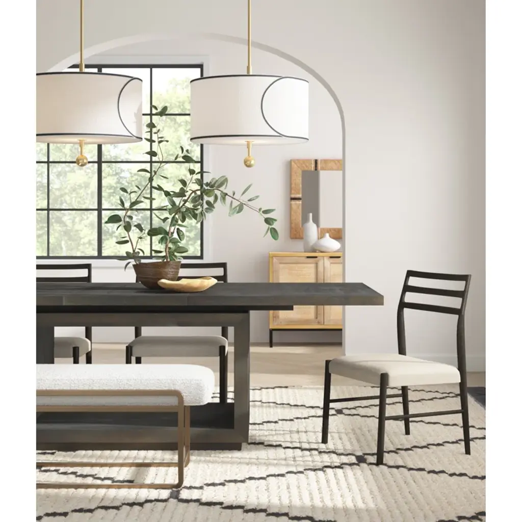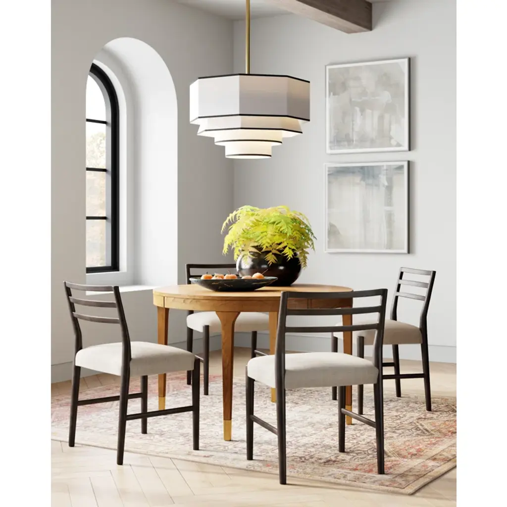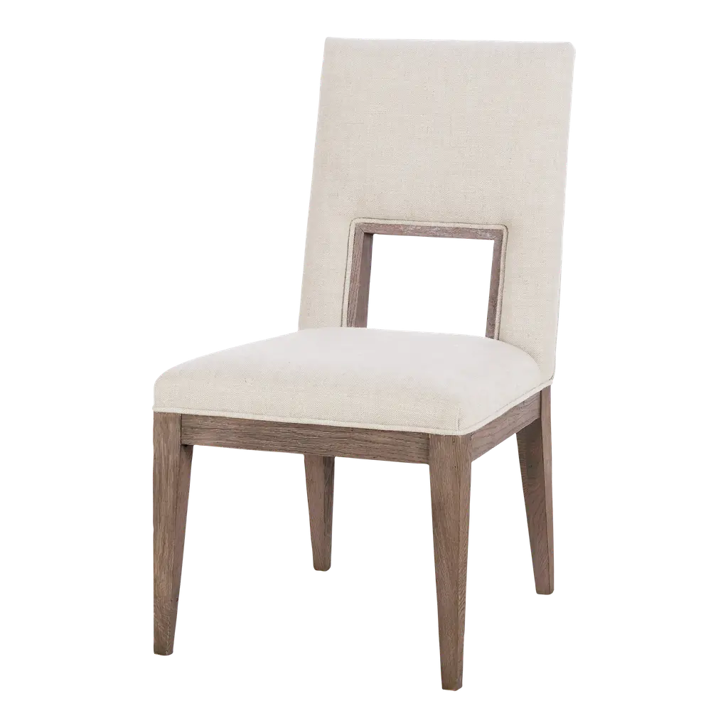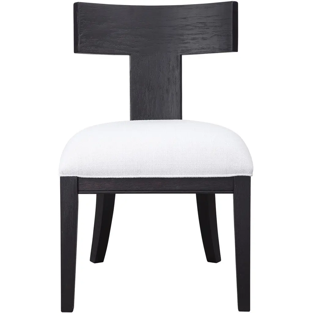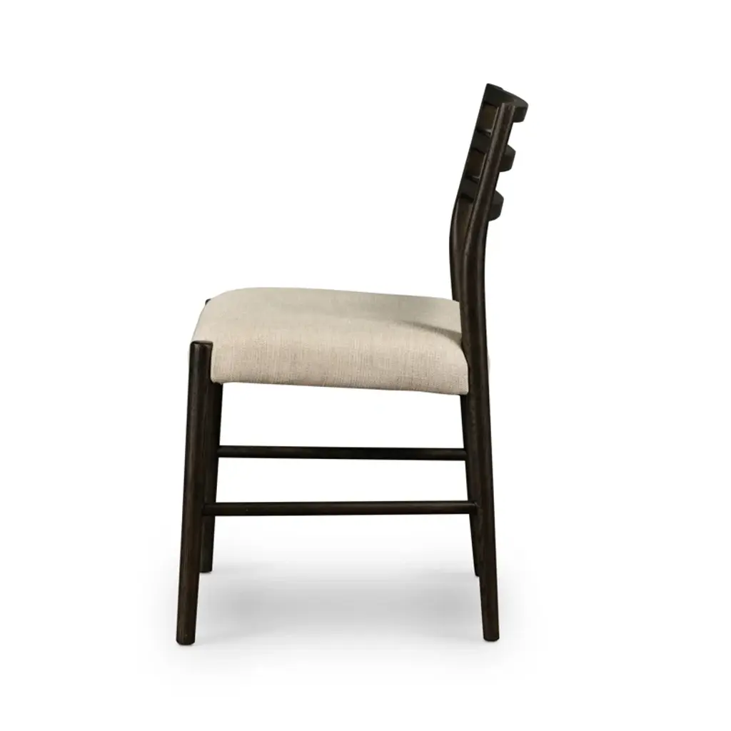 Modern materials redefine the classic ladder back silhouette in this elegant, sculptural side chair. It's made from a scrubbed oak frame with a black finish for a clean, open look with natural depth. This chair sits on four straight legs and has a foam-filled seat upholstered in a blend of cotton and linen. The ivory hue contrasts the black frame for a trend-forward monochromatic look we love. Best of all, this side chair comes fully assembled and backed by a 1-year warranty.
