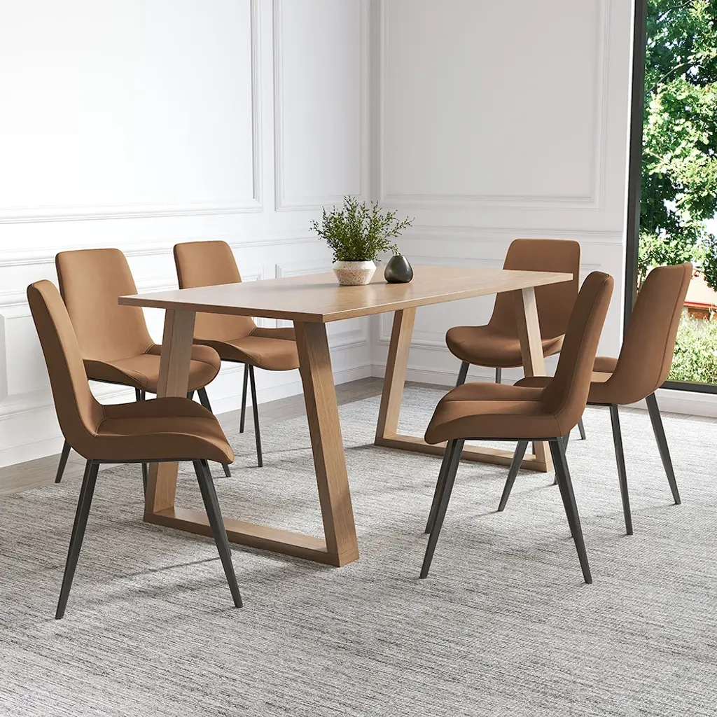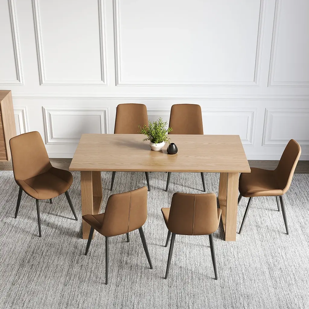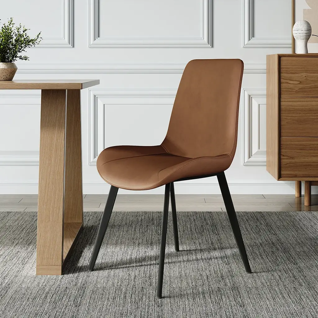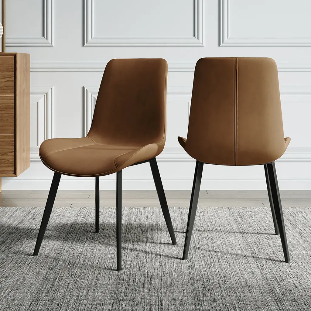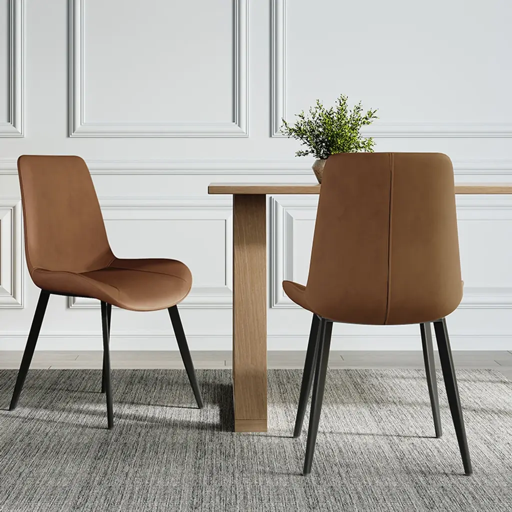 Linesly Series Set Of 2 Mid-Century Pu Leather Dining Chairs Brown