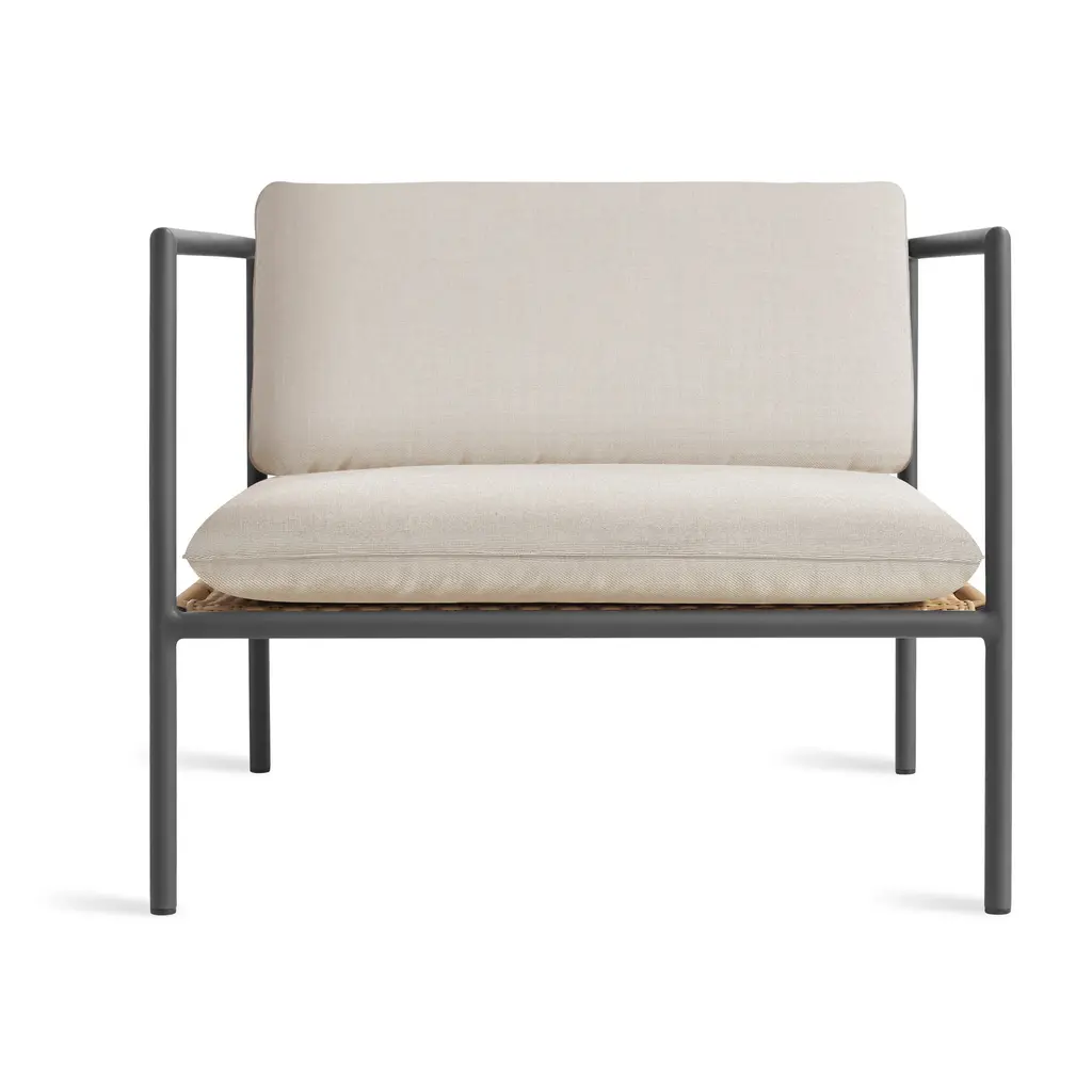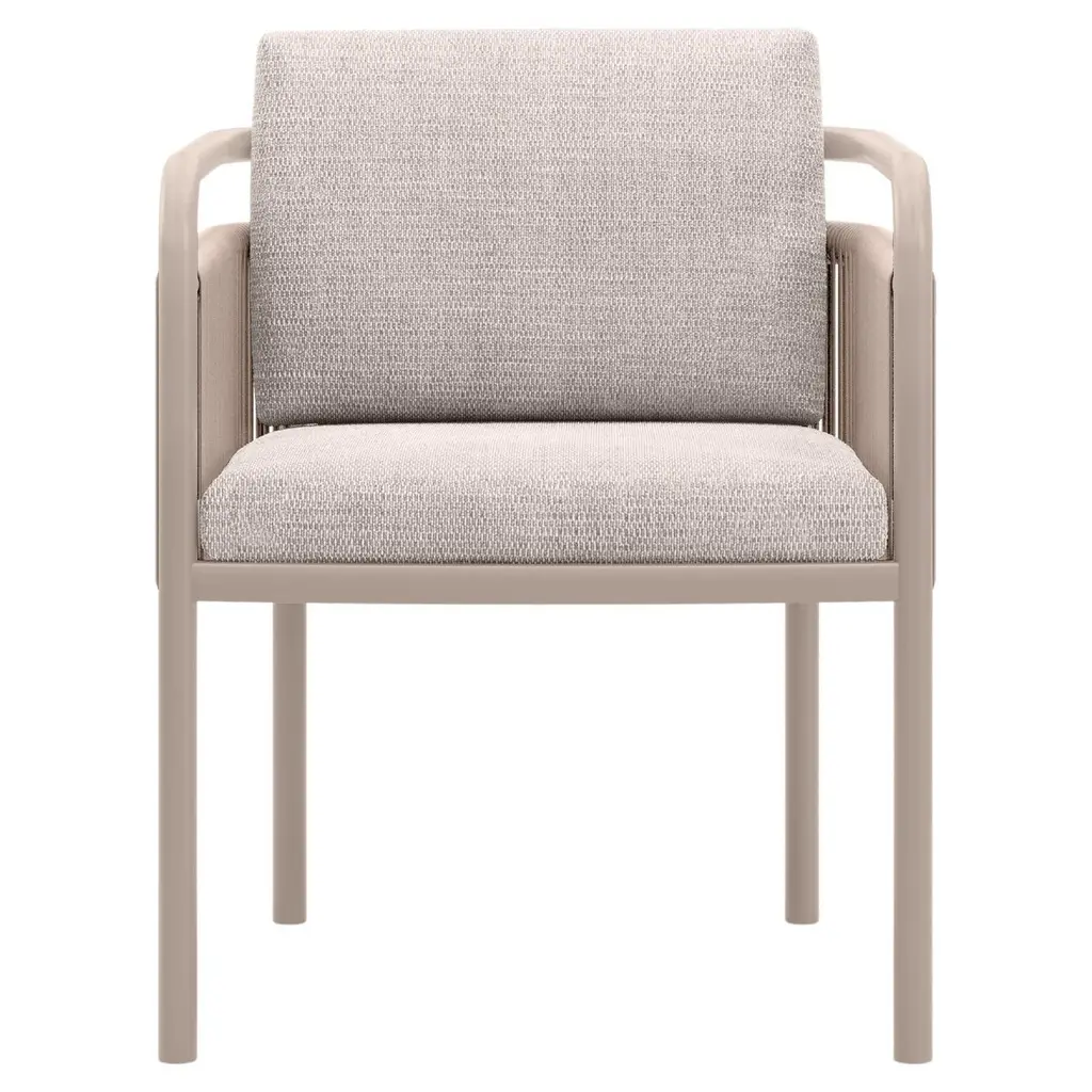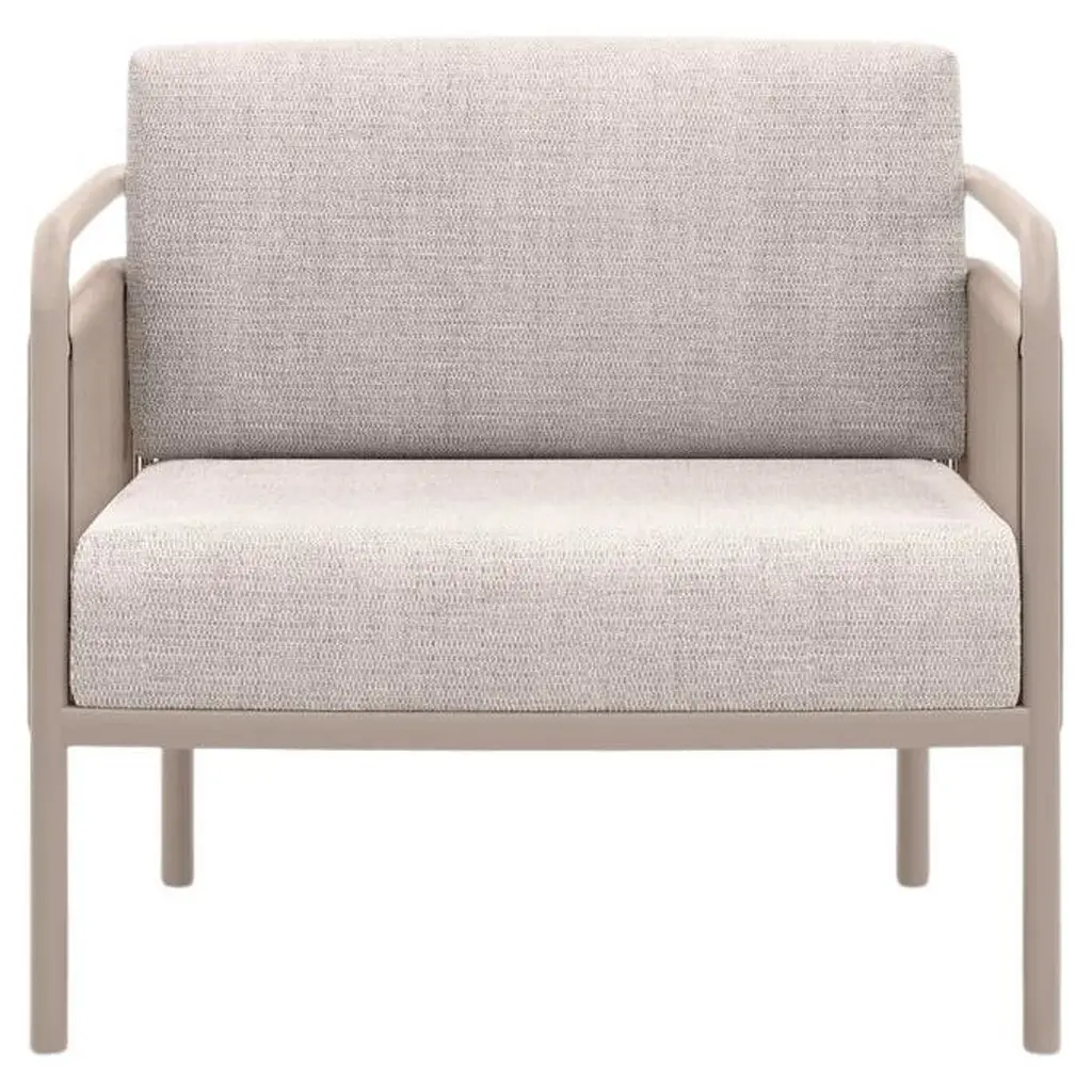 Link-Bisque Wicker And Aluminum Outdoor Armchair With Cushions by SNOCDimensions: D 85,5 x W 78 x H 63 cm.Materials: Aluminium, wicker, and Luminesce fabric. Link-BisqueWhen designing Link collection, Junpei & Iori Tamaki envisioned how multiple pieces placed together would create a link, and how that connection would evolve in various ways.To express Link, Junpei & Iori Tamaki believed that a design with both simplicity and distinctive, memorable features was necessary. For the central pieces of the collection, such as chairs and sofas, Junpei & Iori Tamaki adopted a design that emphasizes the contrast between the parts wrapped with rope and those without, set against a simple frame structure. This contrast creates a beauty in the balance of roughness and refinement.SnocSince their foundation in 2004, SNOC’s history has been interwoven with that of international design. Each chapter written with care, each product reflecting its passion. The company understands that a real story exists behind each object and behind that story, a real person desiring something more. Their ever-developing methodology focuses on defining the core of a brand and utilizing those characteristics to help nurture its soul, aiding in forging real connections. This approach , results in their unique “work in progress” style: original, versatile solutions that in their signature blend of sound, vision and design best-suit every environment and situation, arousing a range of emotions on a daily basis as well as standing the test of time.Driven by functional research, an inclusive project and product culture, and deep care for the environment, we exist as the timeless yet present essence of outdoor furniture design elevating private and public space a like with thoughtfully presented, endlessly adaptive creations.