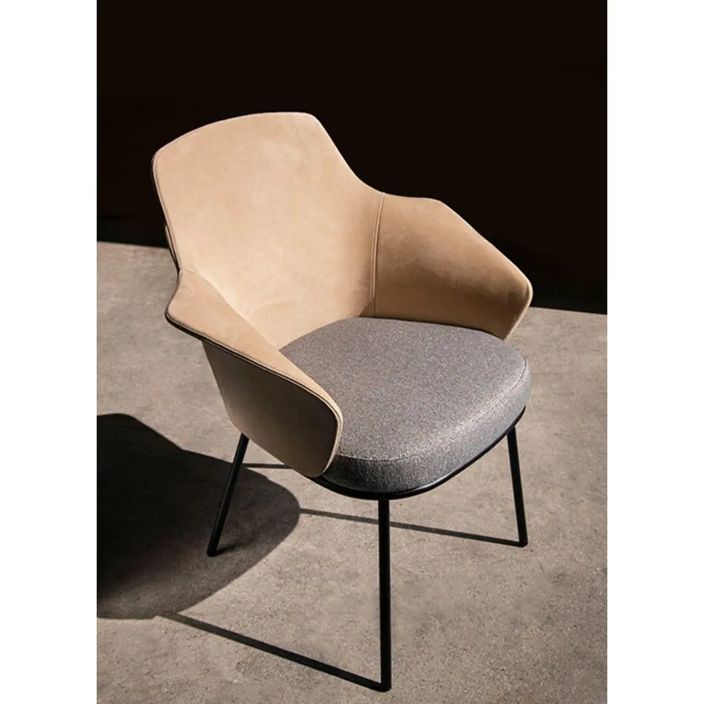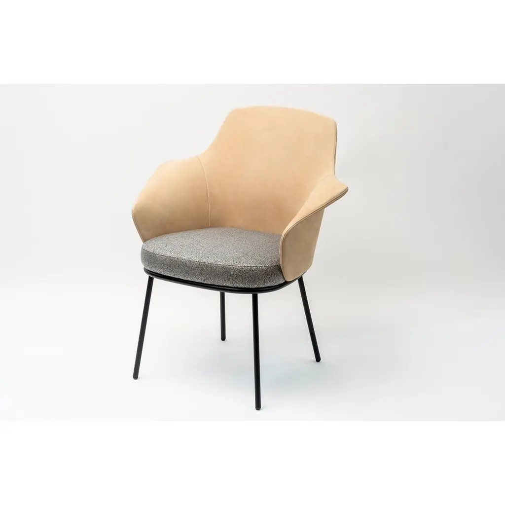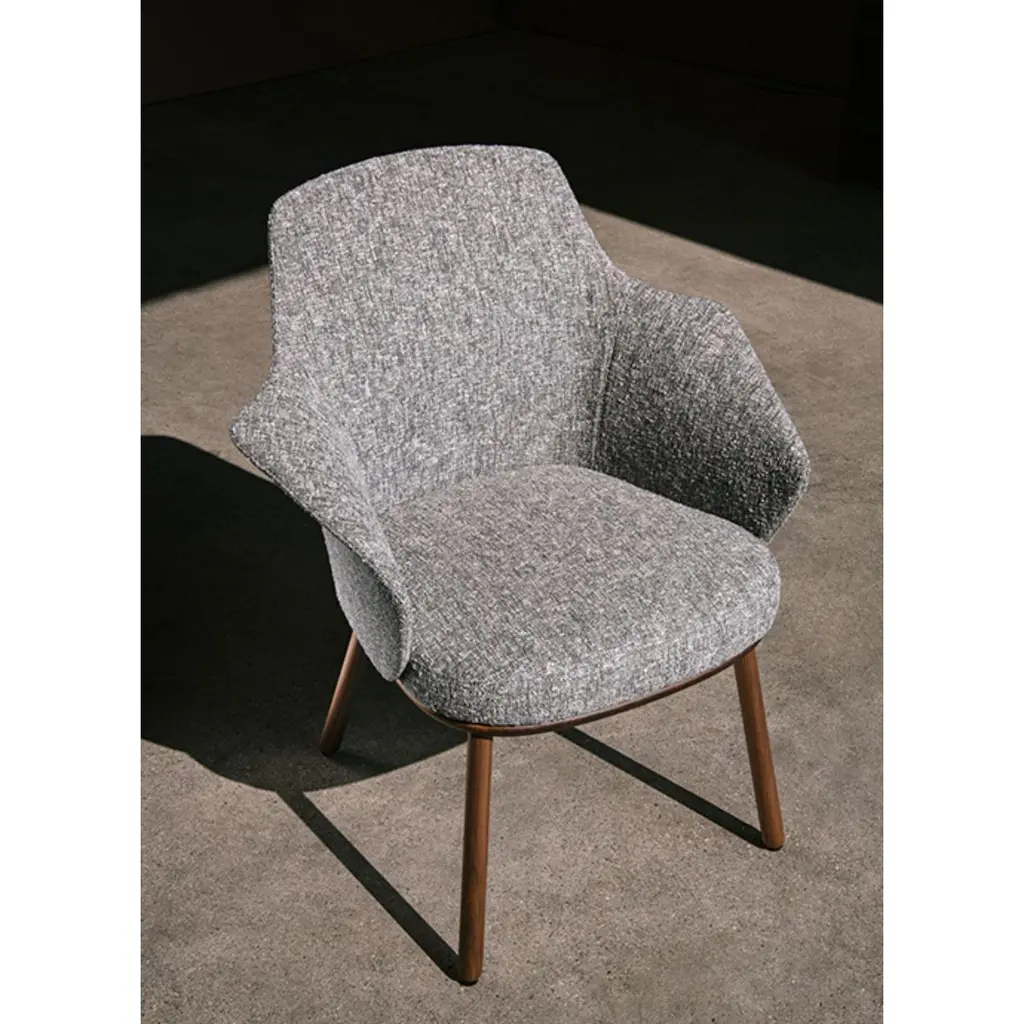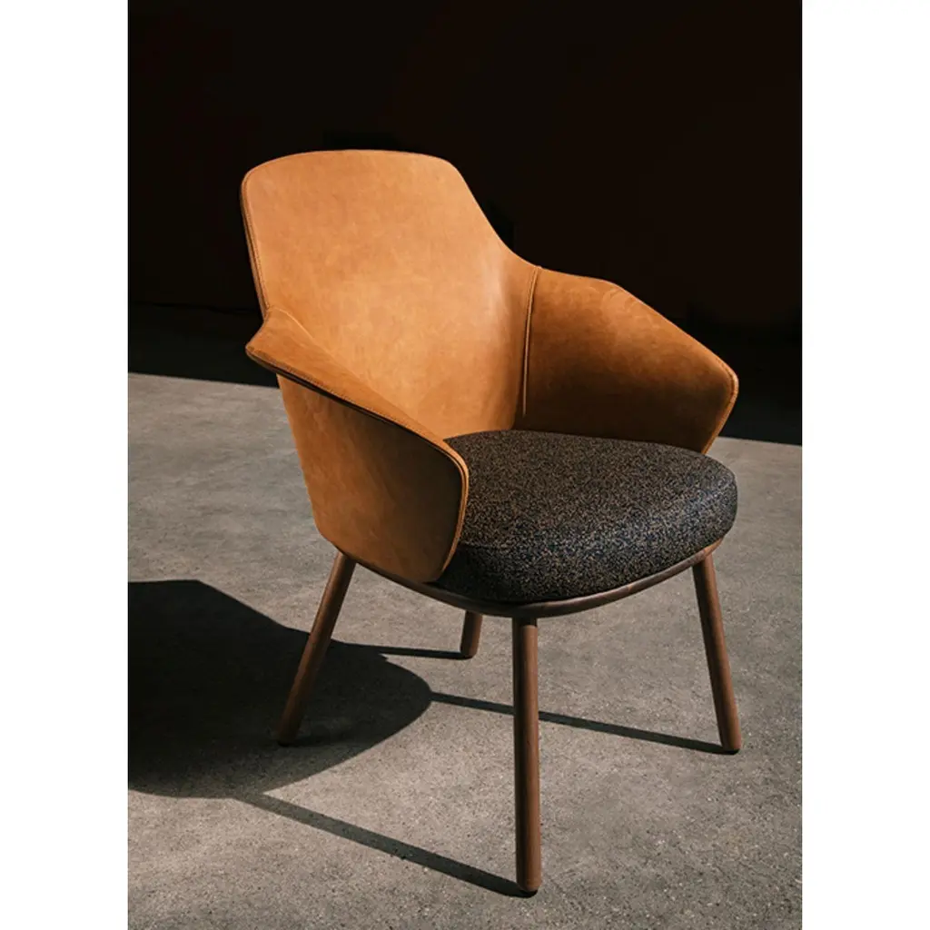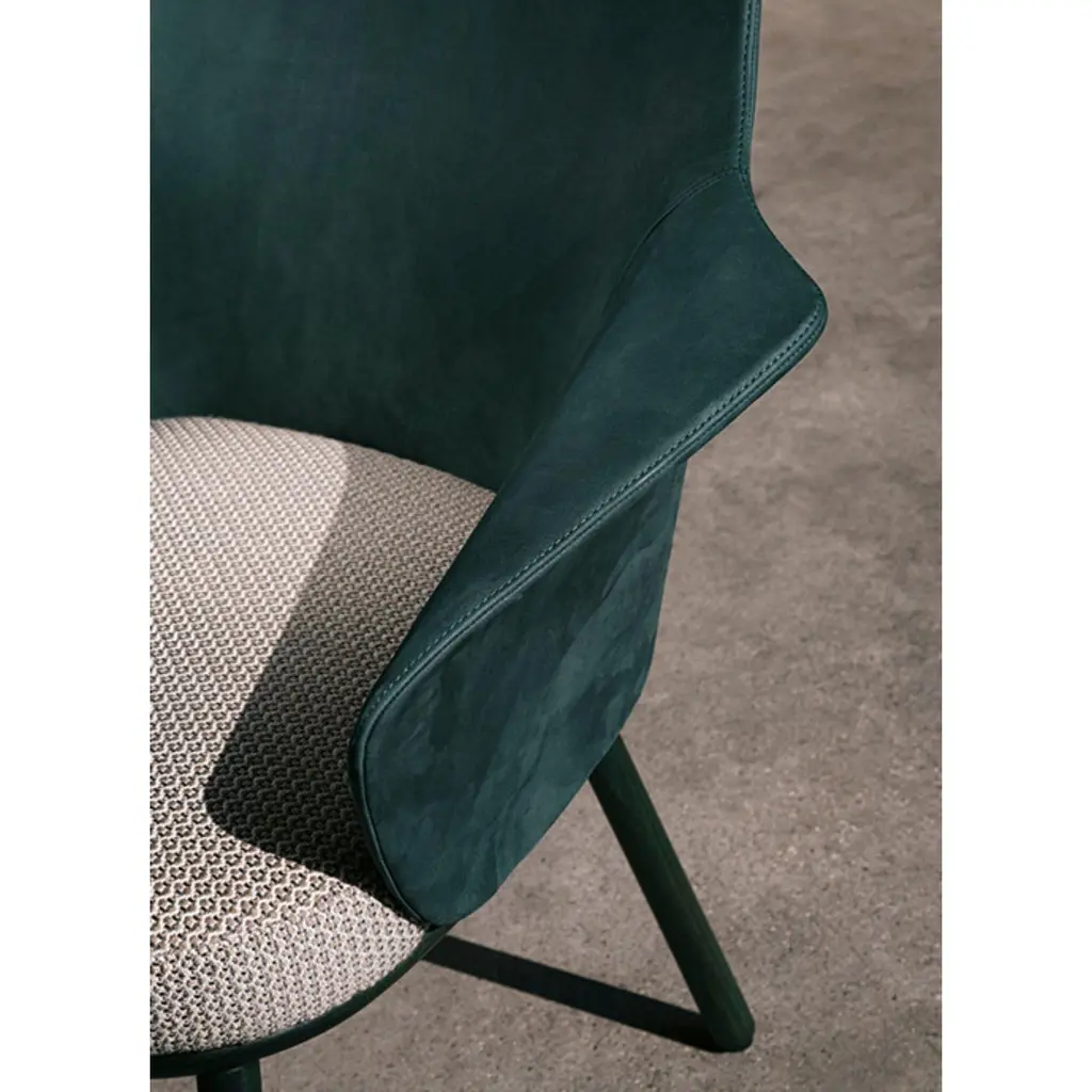 Linus armchair by MarCo Dessí.Materials: upholstery: fabricStructure: wood: Noce Canaletto solid wood, coral/dark green/black stained wood Also available metal: Black powder-coated metal, black chrome metalDimensions: W71.9 x D60.2 x H86.3 cmThe Linus chair inspiration is rooted in the Nordic design heritage.Homage to an organic modernism, its sumptuous and inviting shapes espouse a contemporary andstraightforward minimalism. A modern chair that perfectly travels through past, present andfuture. This small chair fits almost everywhere: in domestic and contract environment, alone or in groups, around a meeting table or in a fine dining situation. Available in different bases: 4 legs in metal or wood, Star Shaped structure.MarCo Dessí, born in Merano, Italy in 1976 studied Industrial Design at the University of Applied Arts in Vienna. In 2008 he established his own design studio. The Studio MarCo Dessí is a multidisciplinary design studio based in Vienna and works with a list of international clients and cultural institutions on a large varietyof projects, ranging from furniture and productdesign to spatial design. The studio’s approach ispractical and collaborative. Design is understood as an interactive process in which the client’s production methods are taken into account during the conception. The Studio Dessí is not committed to a particular style, a preferred material nor an established formula - indeed the way an item is produced and the understanding of its materials have a direct influence over its aestheticism and thestory that it tells.