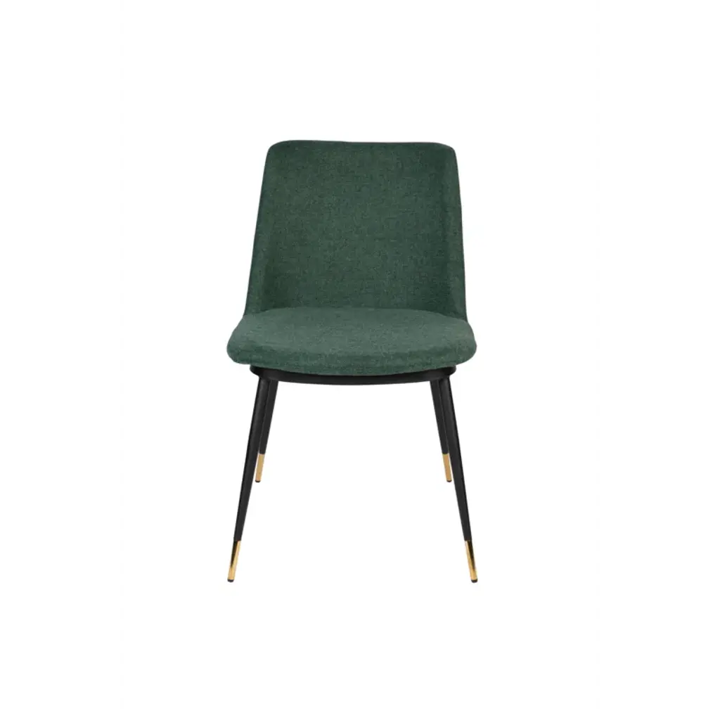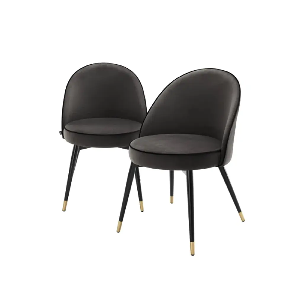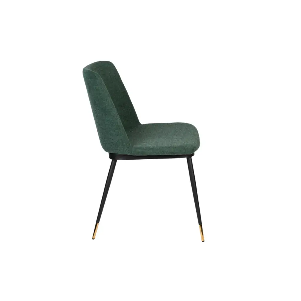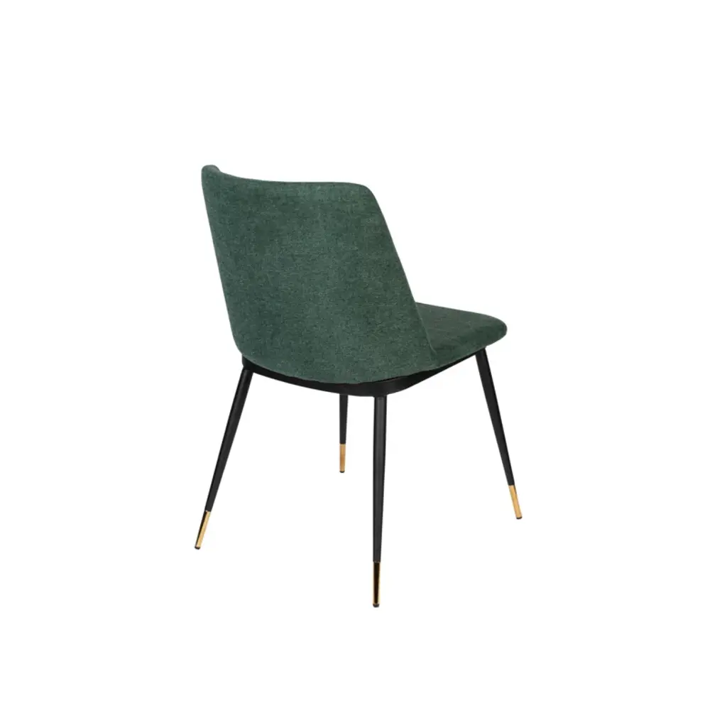 Lionel chair by DF is a contemporary take on a classic design - fabric upholstery, curved back, and stiletto legs with golden caps. Its polished simplicity makes it all the more charming, an ideal dining seating for that immaculate, modern kitchen.