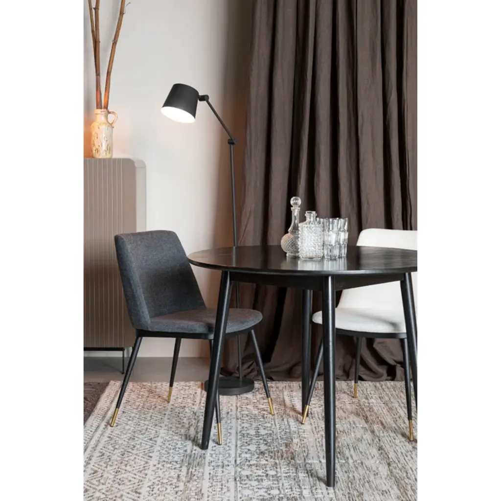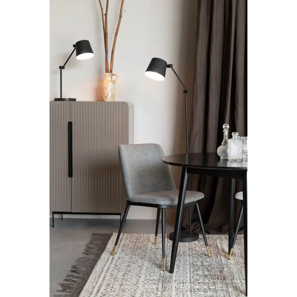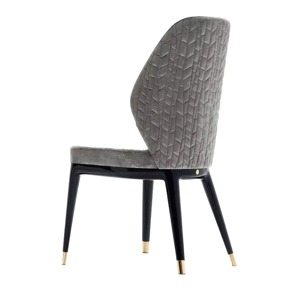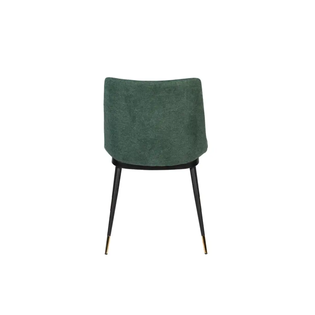 Lionel chair by DF is a contemporary take on a classic design - fabric upholstery, curved back, and stiletto legs with golden caps. Its polished simplicity makes it all the more charming, an ideal dining seating for that immaculate, modern kitchen.