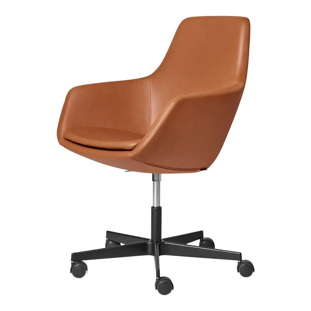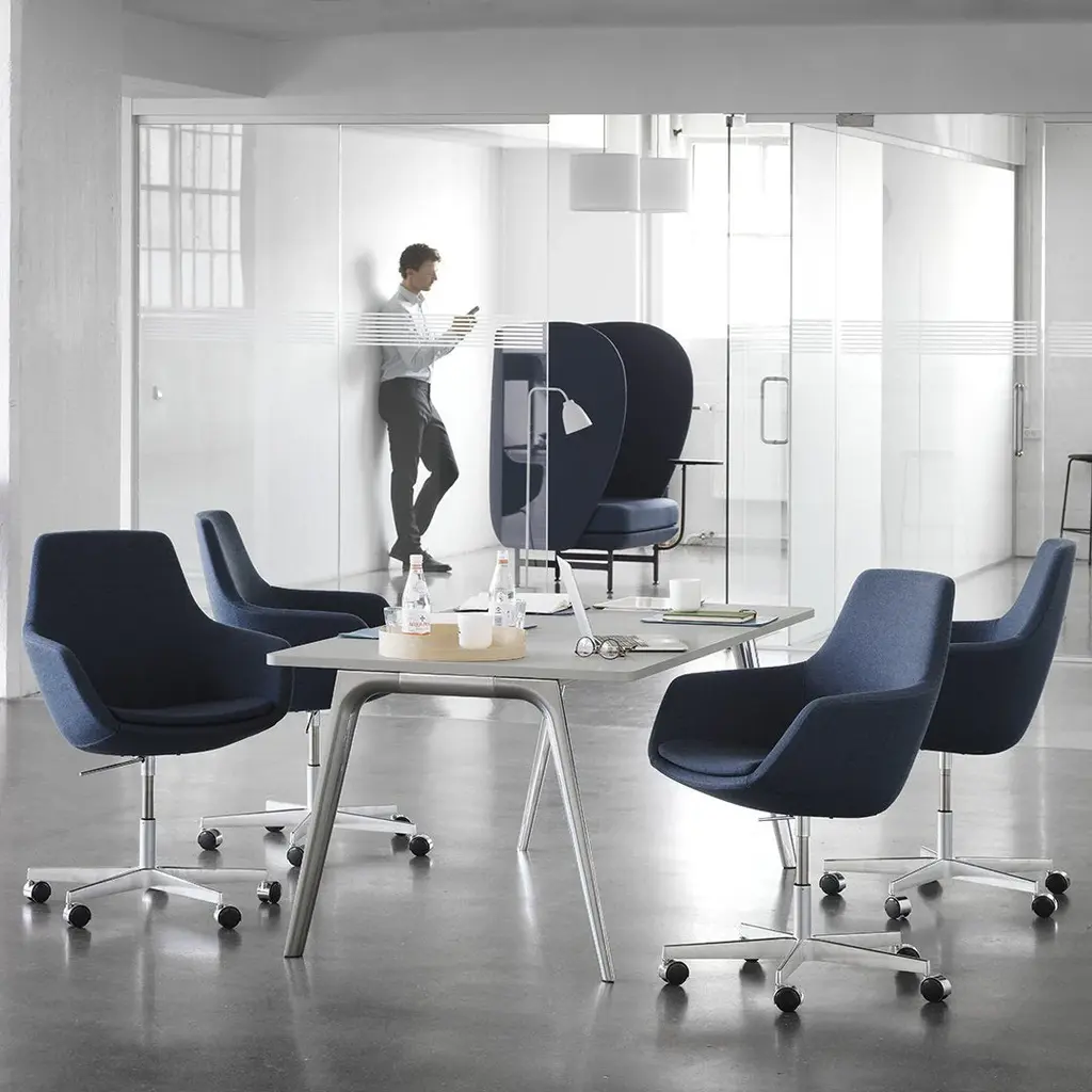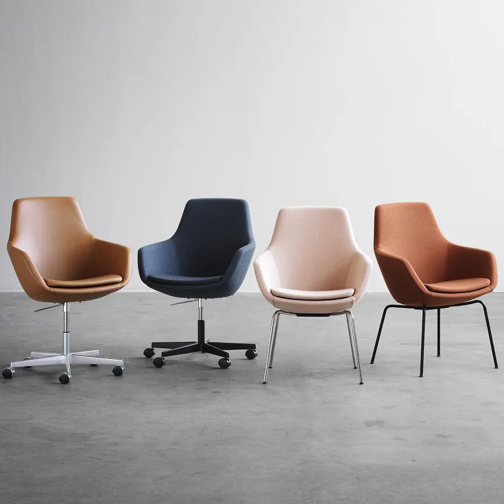 The Giraffe which earned its name because of its high backrest, dates back to 1959. Arne Jacobsen is the designer behind this beauty, and it was part of his total design of SAS Royal Hotel in Copenhagen. Jacobsen played around with the Giraffe and made different versions, and the one we know today is the Little Giraffe, characterized by a lower back and a four-legged base. The Little Giraffe caters for daily use in hotel lobbies, canteens or meeting rooms as well as working beautifully around any dining table at home. No matter the space surrounding the Little Giraffe, it tells a tale of original Arne Jacobsen design, of impeccable Fritz Hansen upholstery skills and of a sculpture that simultaneously embodies both aesthetics and comfort. Like Arne Jacobsen's many other pieces of furniture created with Fritz Hansen, the Little Giraffe is an example of genuine mid-century Danish design which is known for its timelessness, craftsmanship and adaptability to many different interior styles.