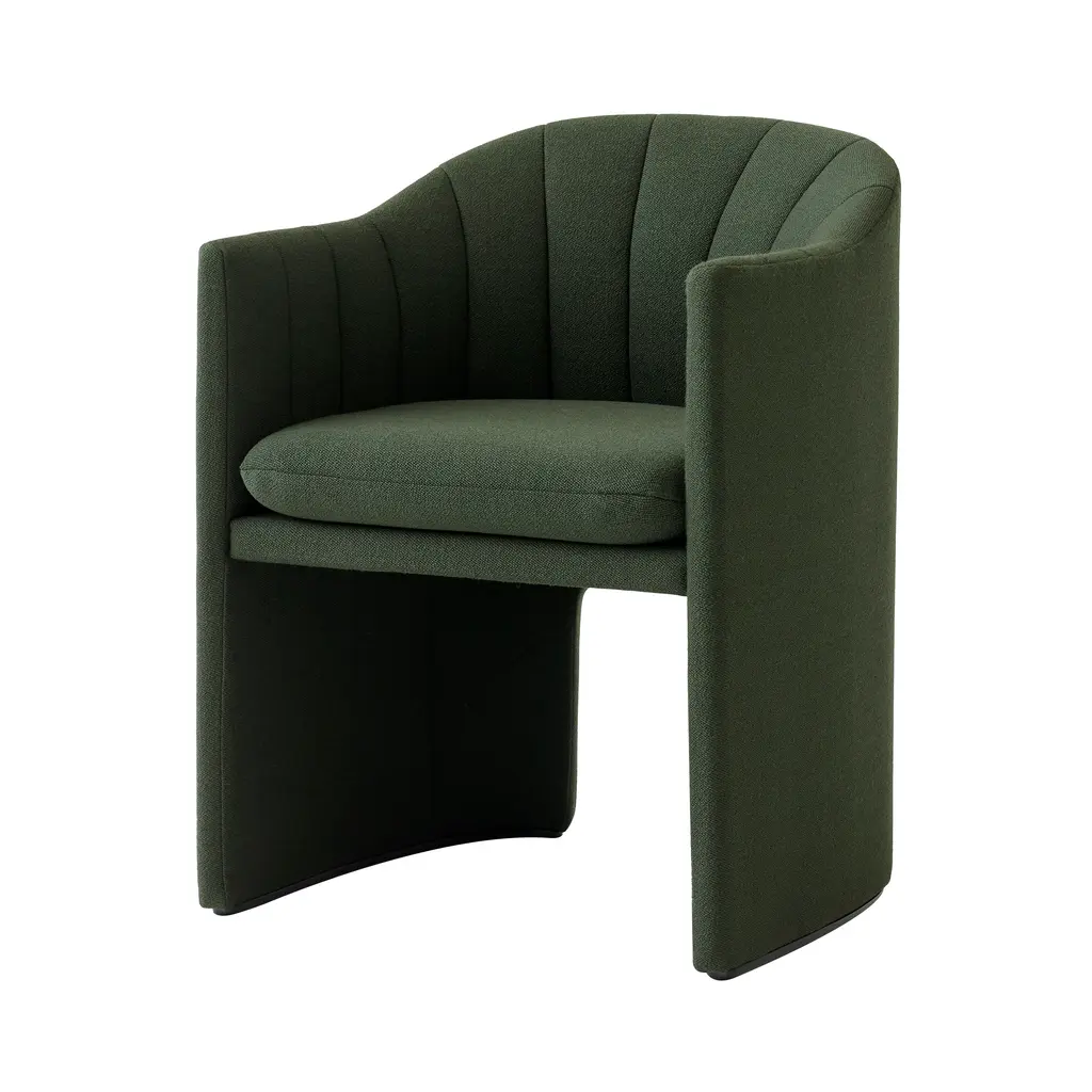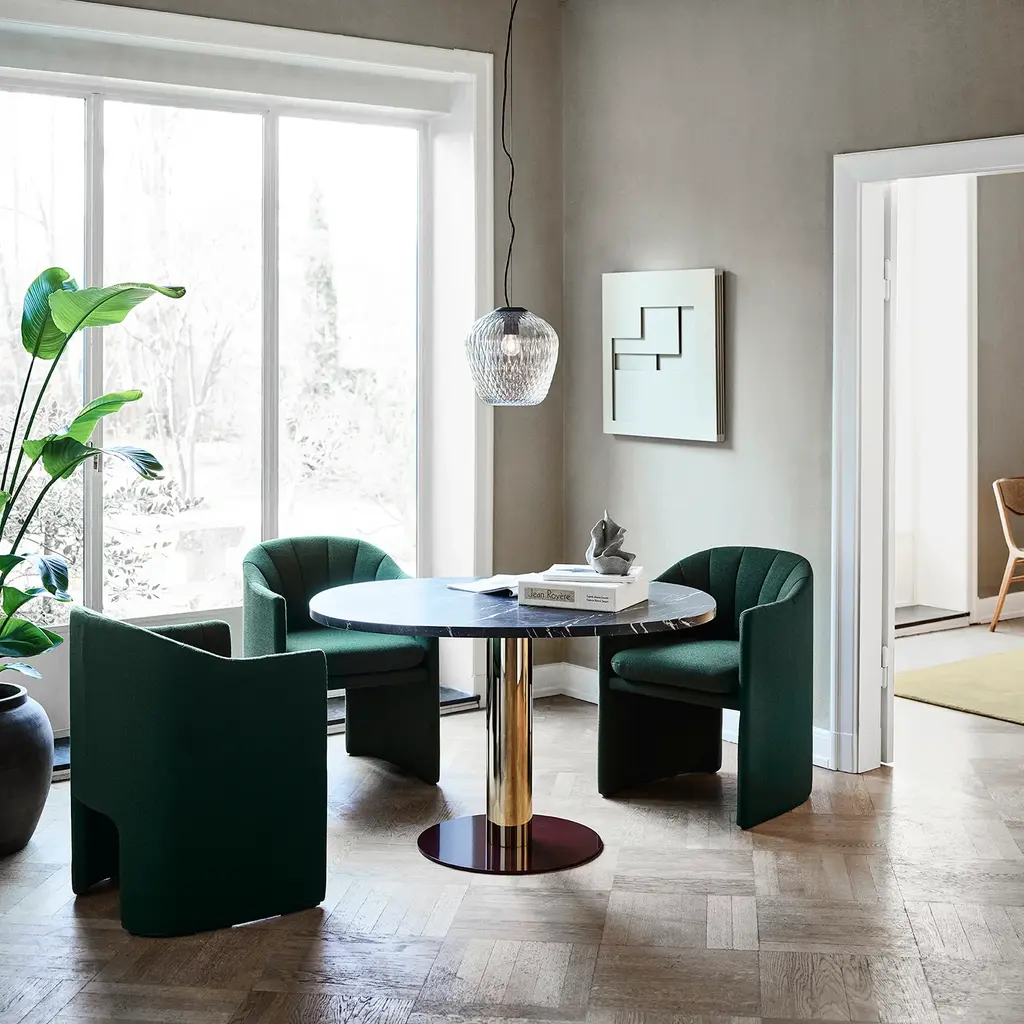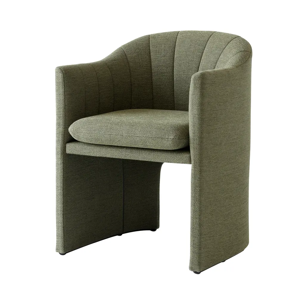 This fully upholstered dining chair is soft yet sturdy, an offshoot of Space Copenhagen’s chill Loafer collection. A lighter, narrower version, it’s rescaled with a higher seat for dining and gently sloping sides to form an armrest. At home in upscale eating places and private homes alike, Loafer offers long-lasting comfort and fine craftsmanship with its solid construction, plush upholstery and precisely detailed stitching.