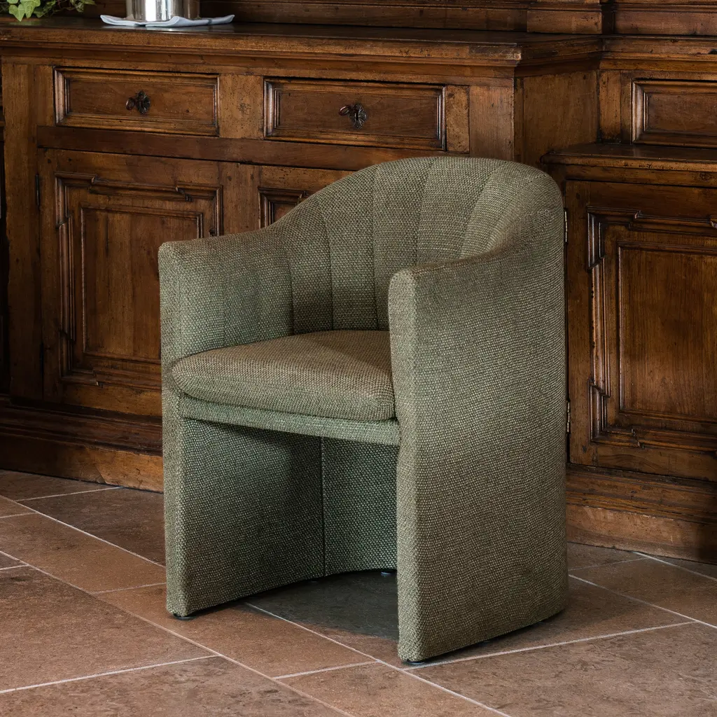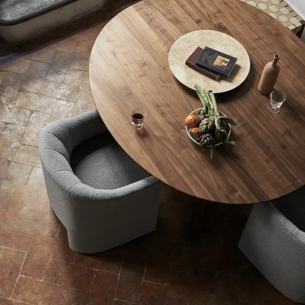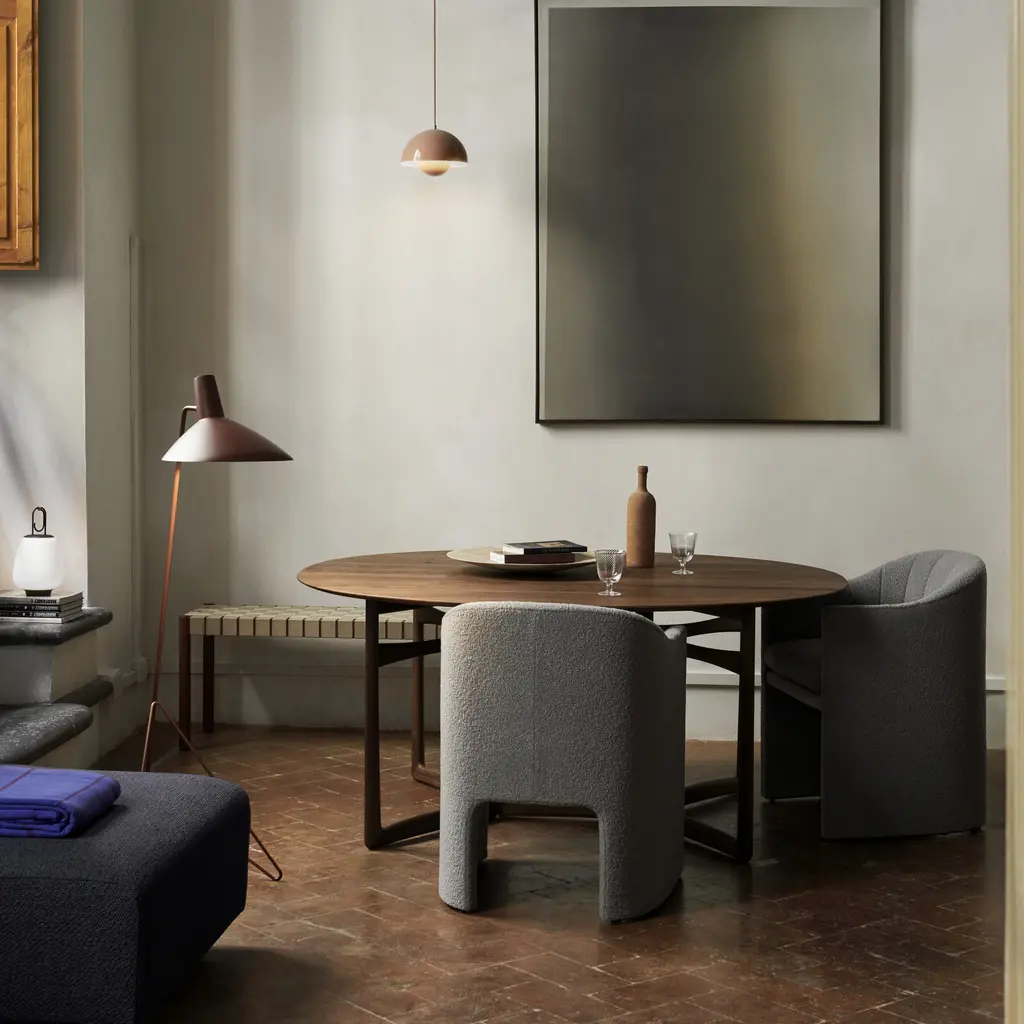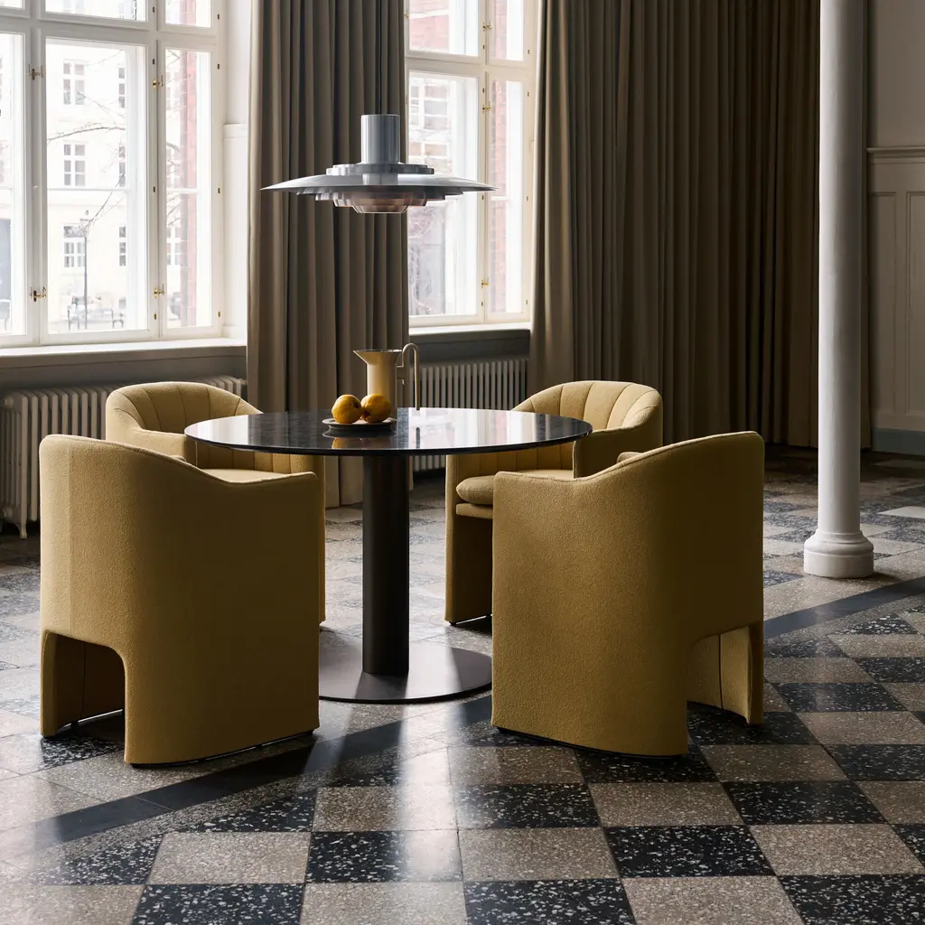This fully upholstered dining chair is soft yet sturdy, an offshoot of Space Copenhagen’s chill Loafer collection. A lighter, narrower version, it’s rescaled with a higher seat for dining and gently sloping sides to form an armrest. At home in upscale eating places and private homes alike, Loafer offers long-lasting comfort and fine craftsmanship with its solid construction, plush upholstery and precisely detailed stitching.