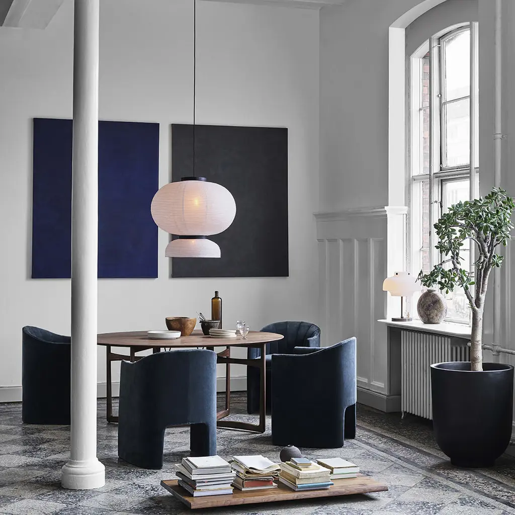 The Loafer chair takes after its sibling, the Loafer lounge chair by Space Copenhagen designed for Arne Jacobsen's refurbished SAS Royal Hotel. Fine-tuned for high-end restaurants, upscale eating environments and private homes, the Loafer chair is a bit lighter, narrower, with a higher seat and a slight slope on either side to comfortably accommodate your arms. A fully upholstered chair that's soft yet sturdy, you'll feel like you're dining in a hotel whether you actually are or not.