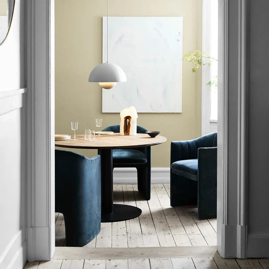 The Loafer chair takes after its sibling, the Loafer lounge chair by Space Copenhagen designed for Arne Jacobsen's refurbished SAS Royal Hotel. Fine-tuned for high-end restaurants, upscale eating environments and private homes, the Loafer chair is a bit lighter, narrower, with a higher seat and a slight slope on either side to comfortably accommodate your arms. A fully upholstered chair that's soft yet sturdy, you'll feel like you're dining in a hotel whether you actually are or not.