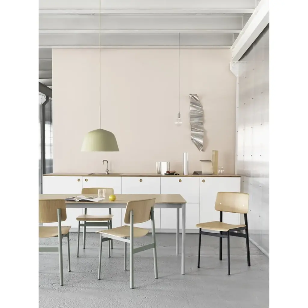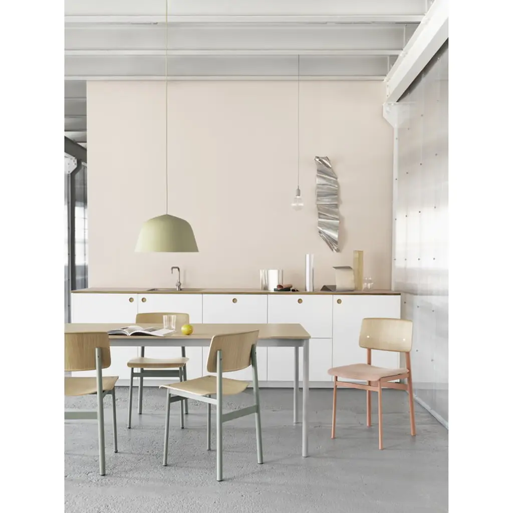 The Loft chair by Muuto was designed by Thomas Bentzen in 2017. It features a clean-lined painted steel frame combined with a seat and backrest made of molded plywood. The Loft chairs play with contrasts, bringing together soft and angular shapes as well as cool and warm materials. The result is a minimal yet characterful expression that fits beautifully in a variety of settings – from dining rooms at home to cafés, restaurants, meeting rooms and other public spaces. The Loft collection offers a range of color and material combinations to suit different interiors.