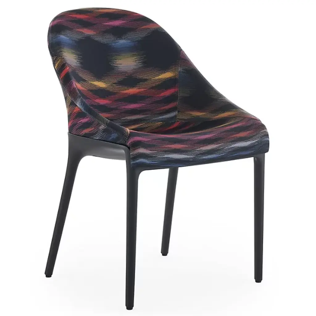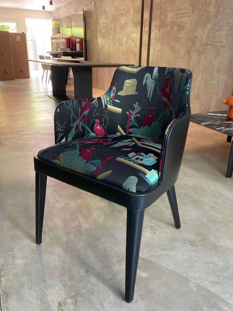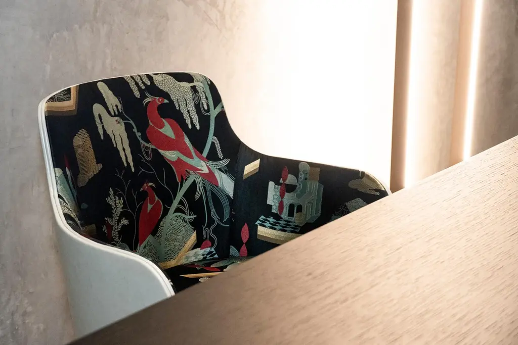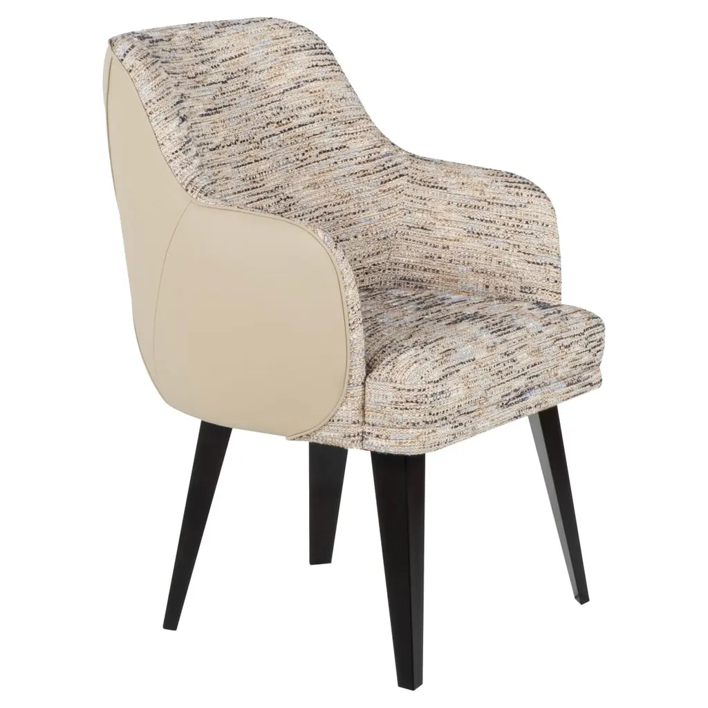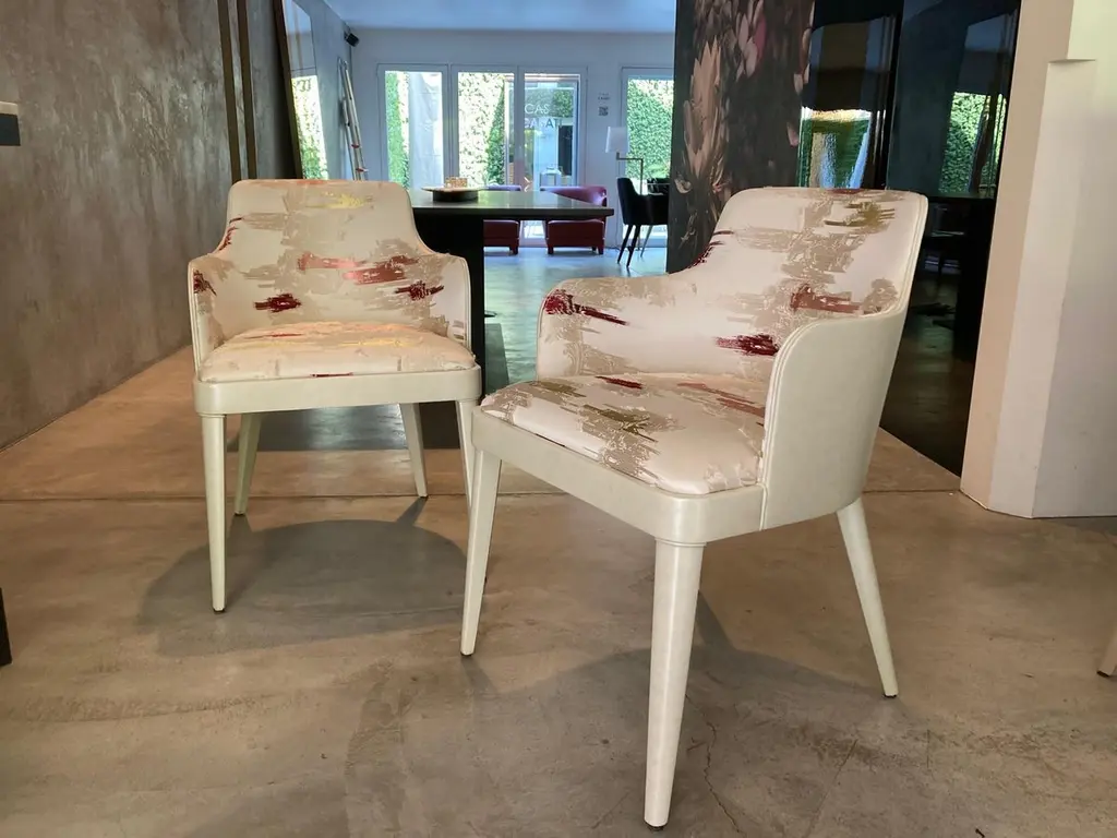 A classic piece of European design revised in its proportions and finishes. The refined piping detail used to cover the joints in the leather becomes one of the characteristics of the chair. On the occasion of the Milan Design Week 2023 Casa Casati presented the Lola Royale: seat and backrest are covered with a targeted selection of fine fabrics. Upholstered in ivory-colored leather, the seat and backrest are embellished with an abstract and textural jacquard fabric. The golden flashes are captured through the use of the fil coupé technique, which gives the piece an almost "unfinished" effect.The upholstered armchair is a classic and always up-to-date piece, which could not be missing from the Casa Casati catalogue. The Lola chair, however, has been revisited in the proportions and finishes to become more comfortable and more fashionable. The four slender legs support a seat of generous proportions: fifty centimeters wide. The ergonomic and enveloping backrest supports your back and at the same time gives you maximum comfort. Designed to be used around a dining table, Lola is a armchair on which even the longest dinners can be enjoyed. These are the dimensions of the Lola: 60x50xh81 cm / 24x20xh32 in.