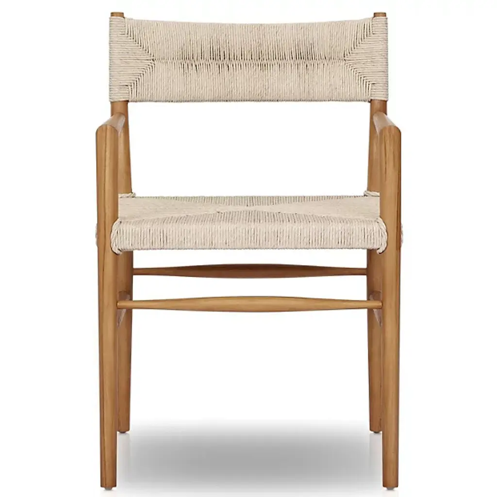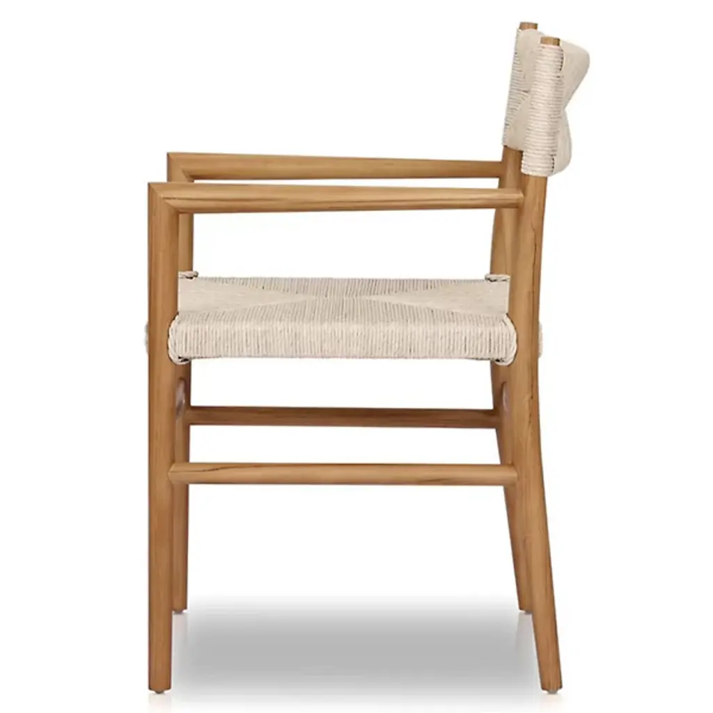 Enjoy your outdoor dining experience with the Lomas Outdoor Dining Armchair from Four Hands. With a coastal and nautical vibe, this chair combines style and durability. Crafted from woven wicker made of 100% polyethylene, it boasts all-weather properties, allowing it to withstand various outdoor conditions. The chair’s frame is constructed from solid teak, adding a touch of natural beauty. Whether you’re having a sunny brunch or a starlit dinner, Lomas provides comfort and charm for your outdoor space.