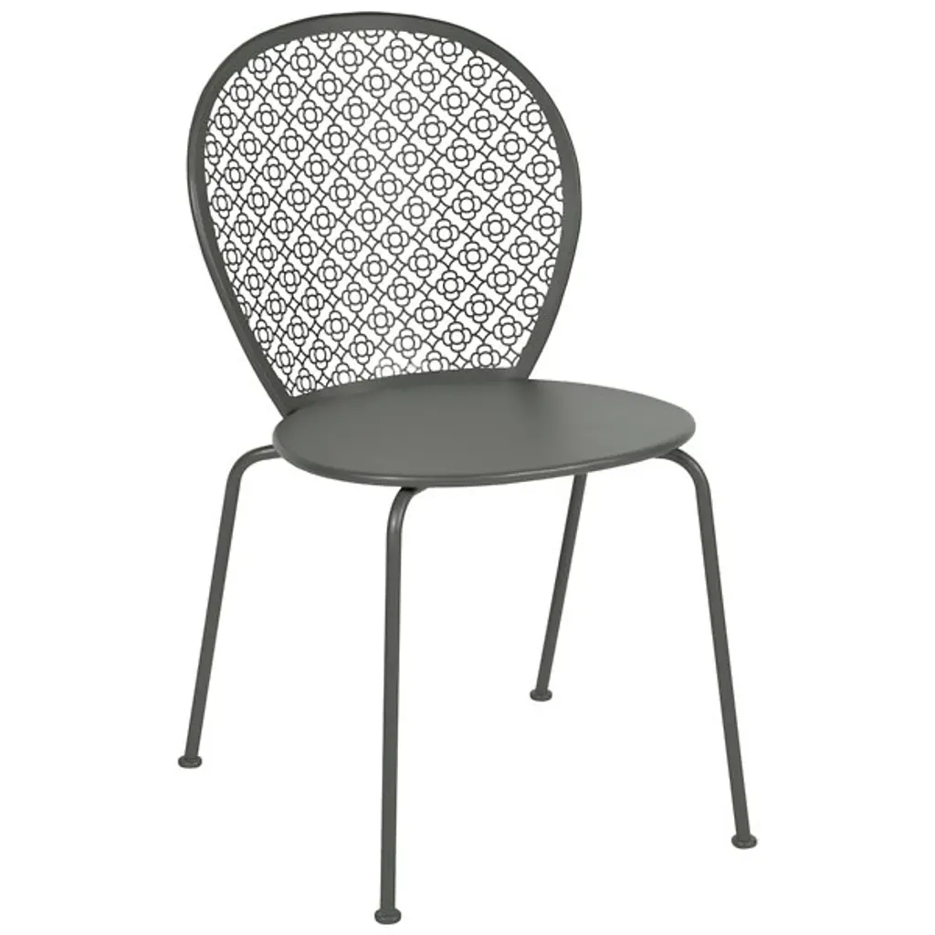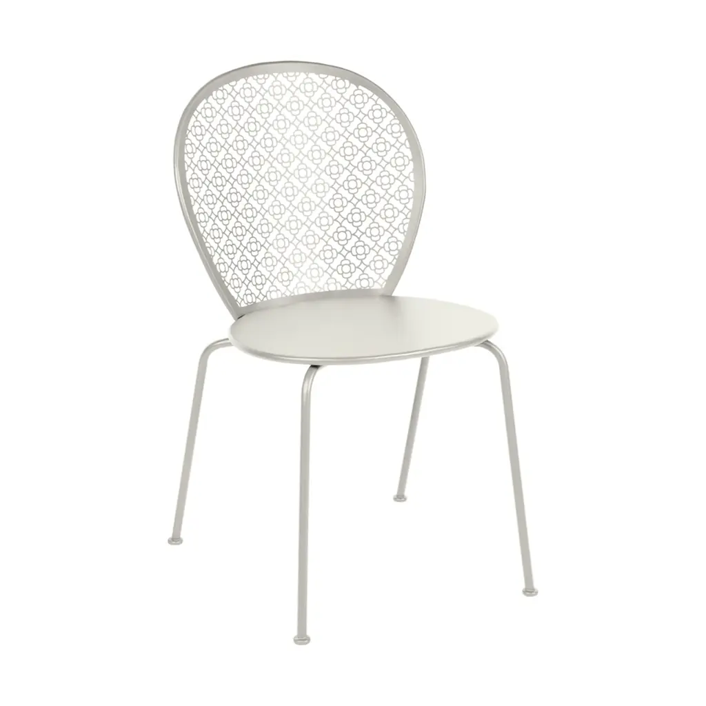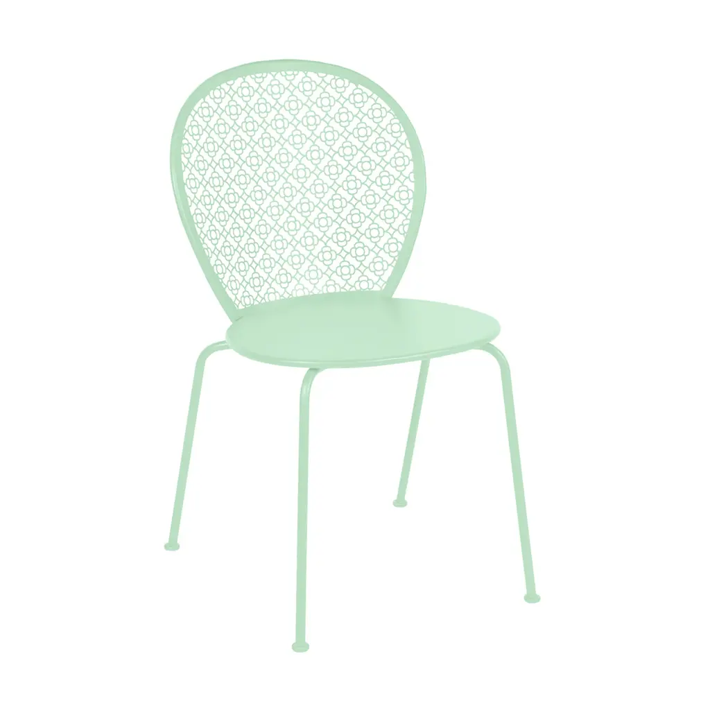 With four slender, straight legs on flared feet to stand firmly on the ground; and rounded angles between the base and the seat, the modern piece is a nod to the furniture style of the 1950s. Its signature backrest, a carefully-crafted latticed pattern of flowers and rhombuses, adds a touch of femininity as found in the French countryside. The chairs are also practical, they are durable, stackable and easy to handle. The Lorette chair lends a special character and softness to outdoor spaces. Features