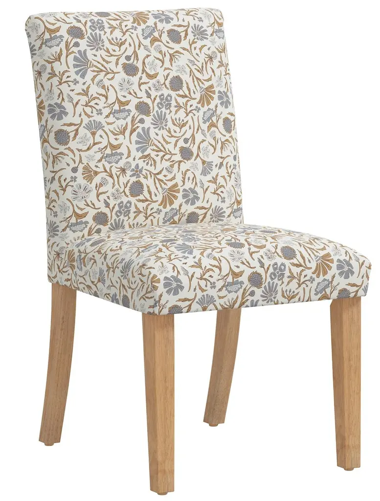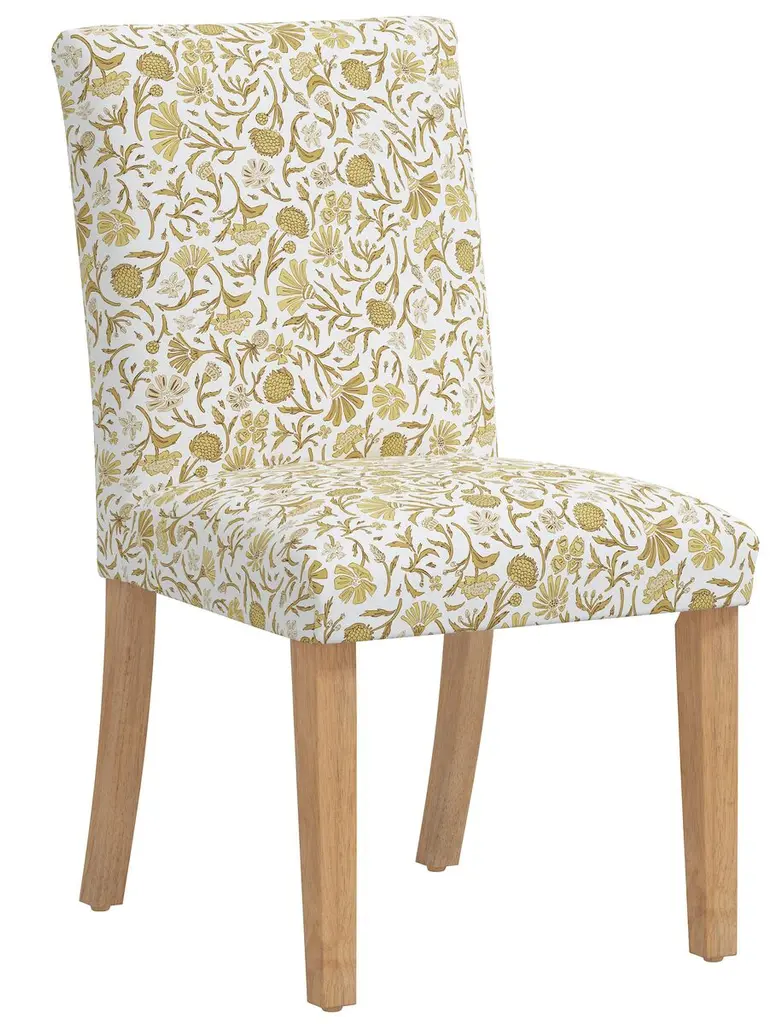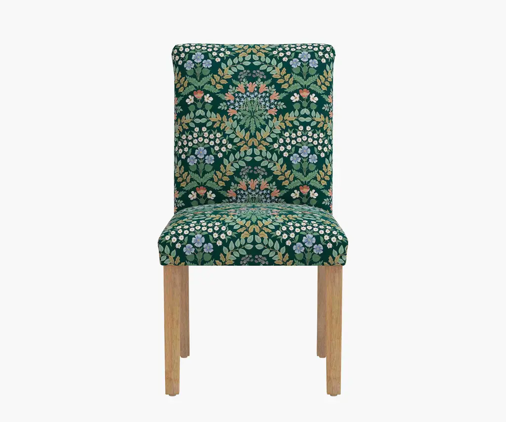 The Lorraine Dining Chair has clean, traditional lines and tapered legs with a light finish. Select from 17 illustrated fabrics for your made-to-order piece, crafted in Chicago by Cloth & Company.