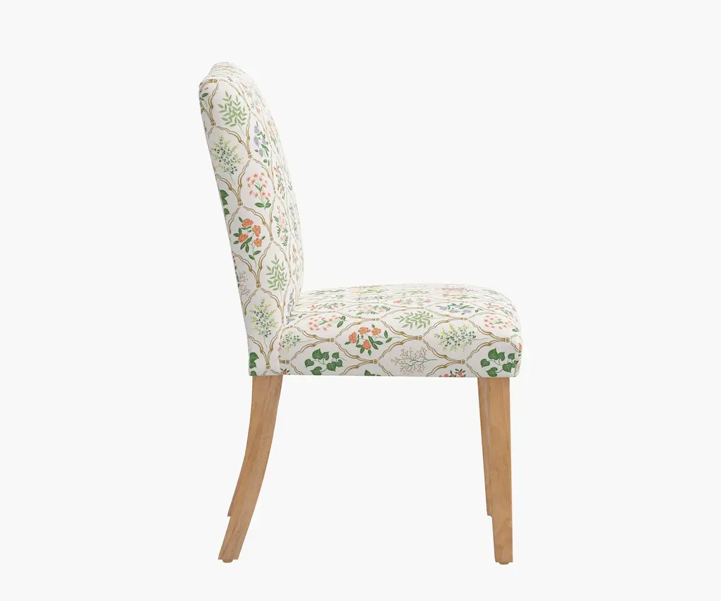 The Lorraine Dining Chair has clean, traditional lines and tapered legs with a light finish. Select from 17 illustrated fabrics for your made-to-order piece, crafted in Chicago by Cloth & Company.