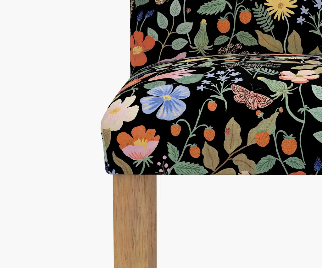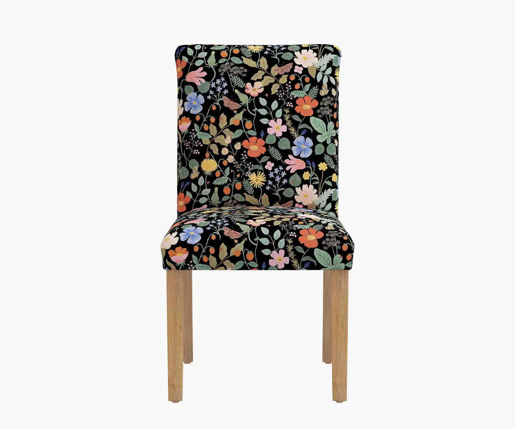 The Lorraine Dining Chair has clean, traditional lines and tapered legs with a light finish. Select from 17 illustrated fabrics for your made-to-order piece, crafted in Chicago by Cloth & Company.