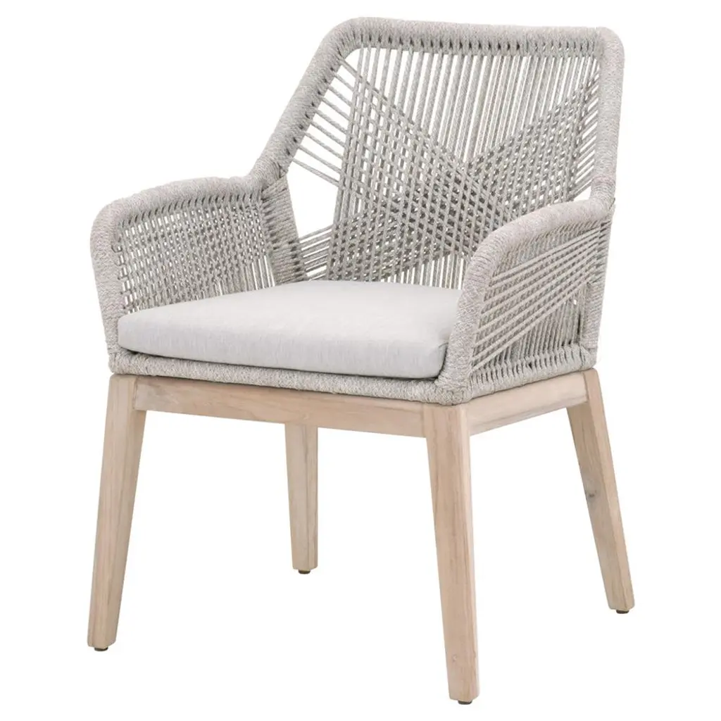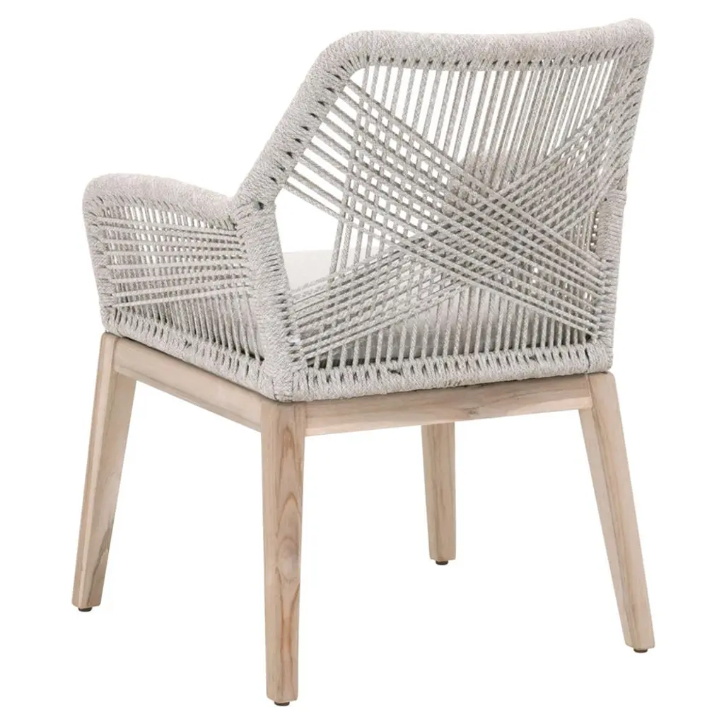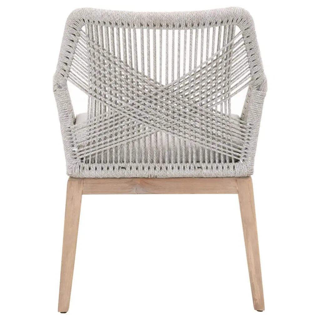 Lorry Coastal Taupe Rope Grey Teak Outdoor Dining Arm Chair - Set Of 2
