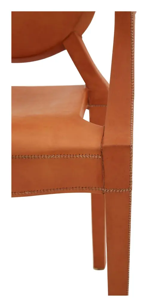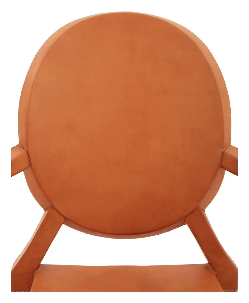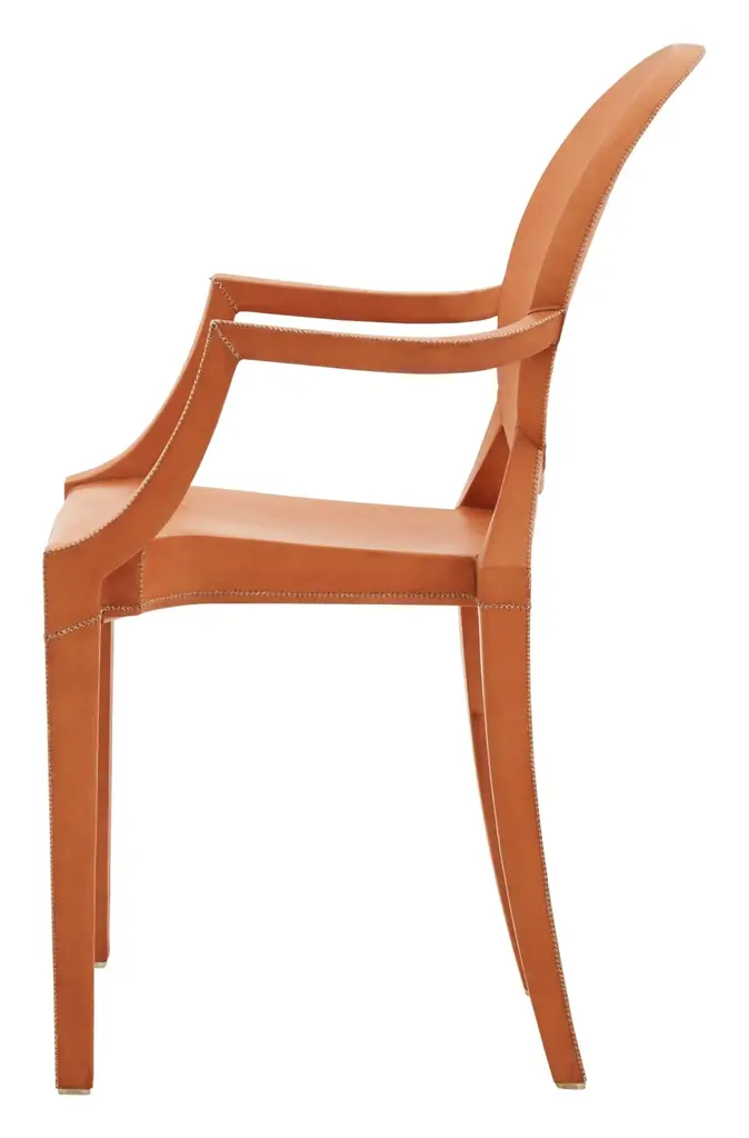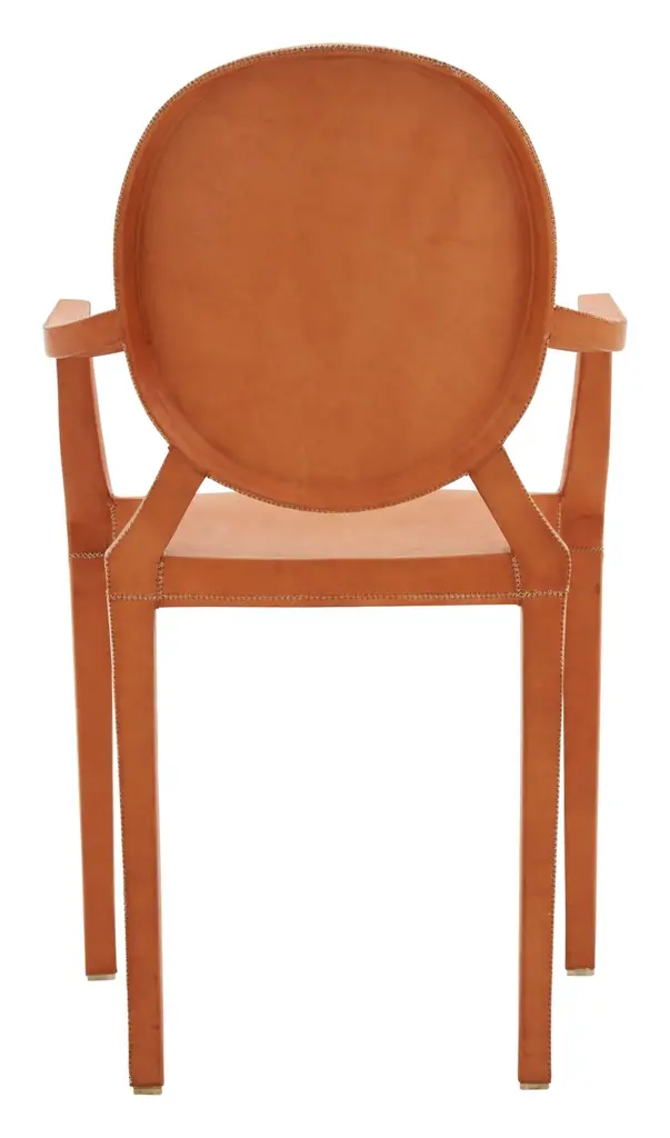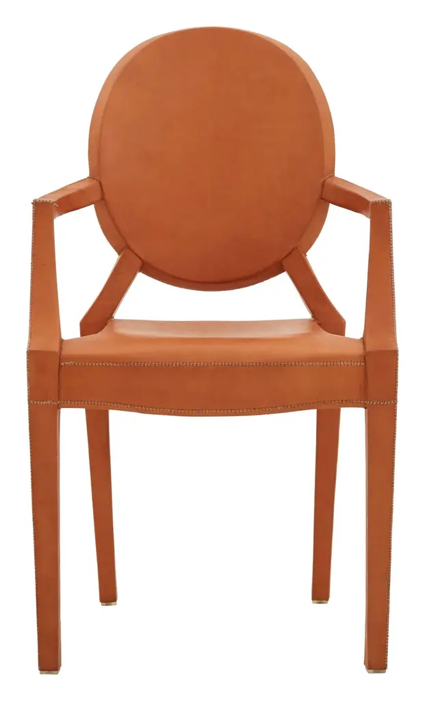 Chic yet casual, our Louis Chair brings a rustic feel to an iconic French silhouette. Inspired by neoclassical design, Louis features elegant, clean lines and a medallion-style back rest, all completely clad in warm Paraguayan leather with exposed cross-stitching at its seams. Perfectly proportioned and comfortably firm and upright, we love this go-anywhere seat pulled up to the dining table or as a pair in a laid-back sitting room. •natural leather •cross-stitch details at seams •covered and stitched by hand Dimensions •20.75"W x 22.5"D x 36.25"H •seat width: 13.25" •seat depth: 17" •seat height: 19.25" •arm height: 26.5"