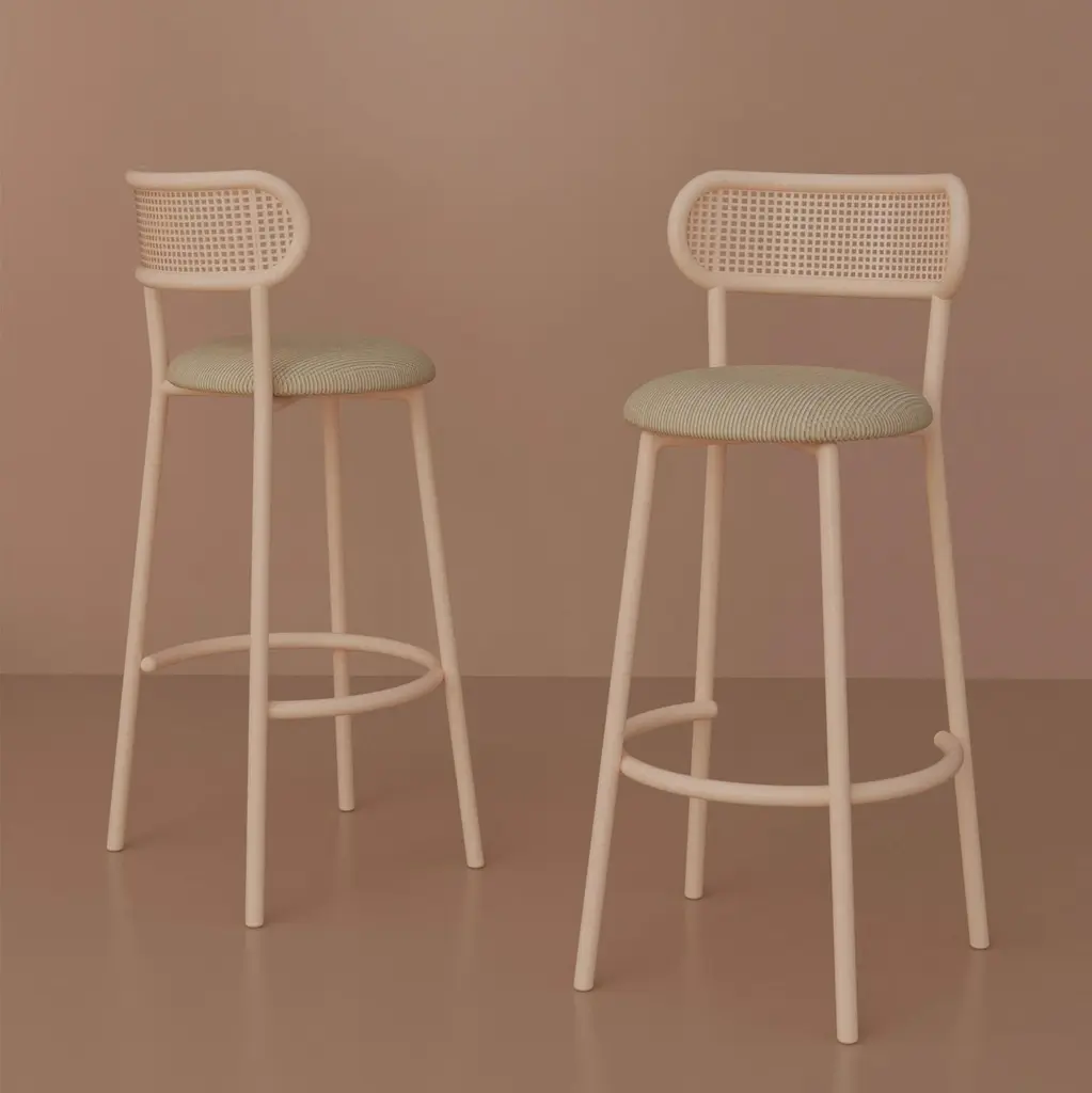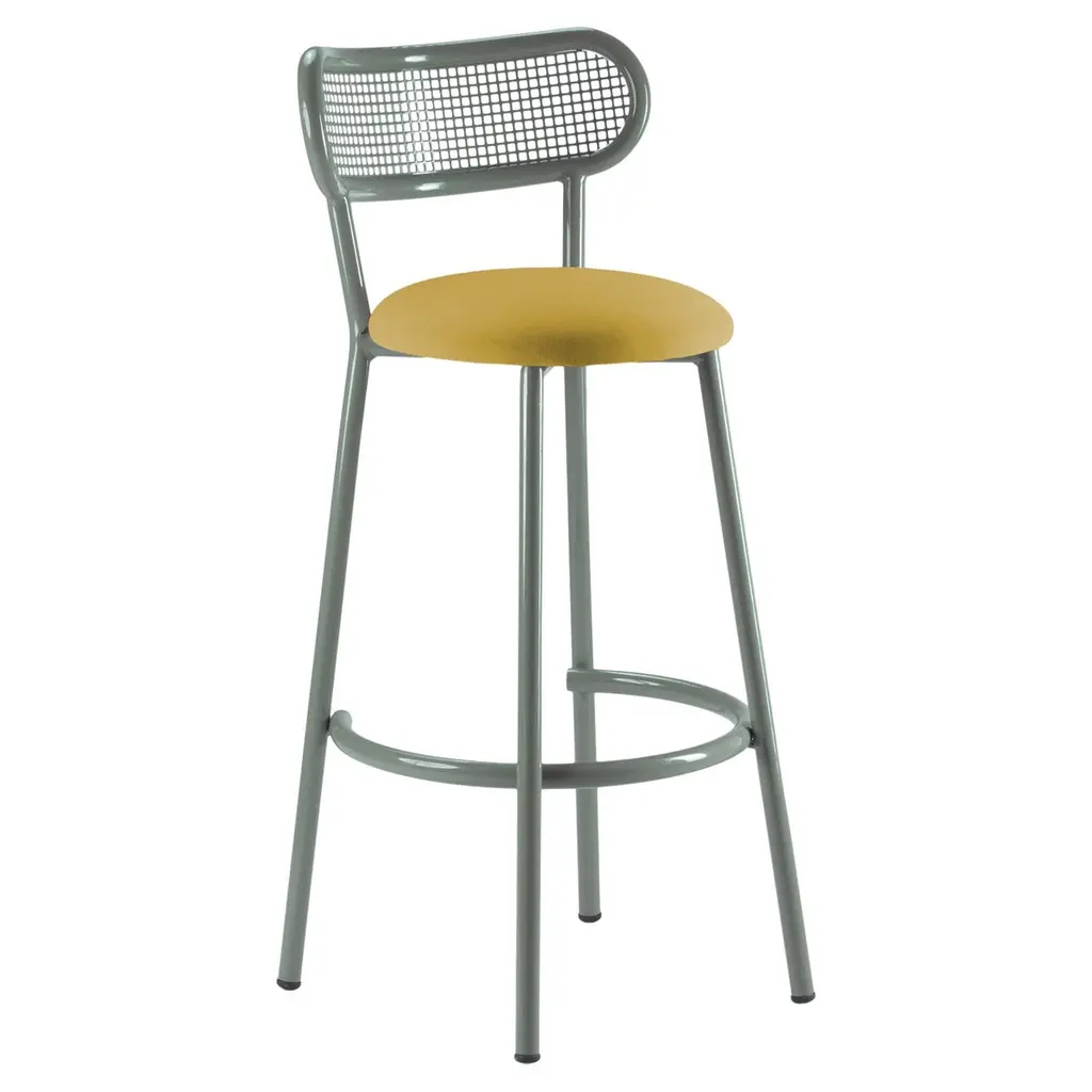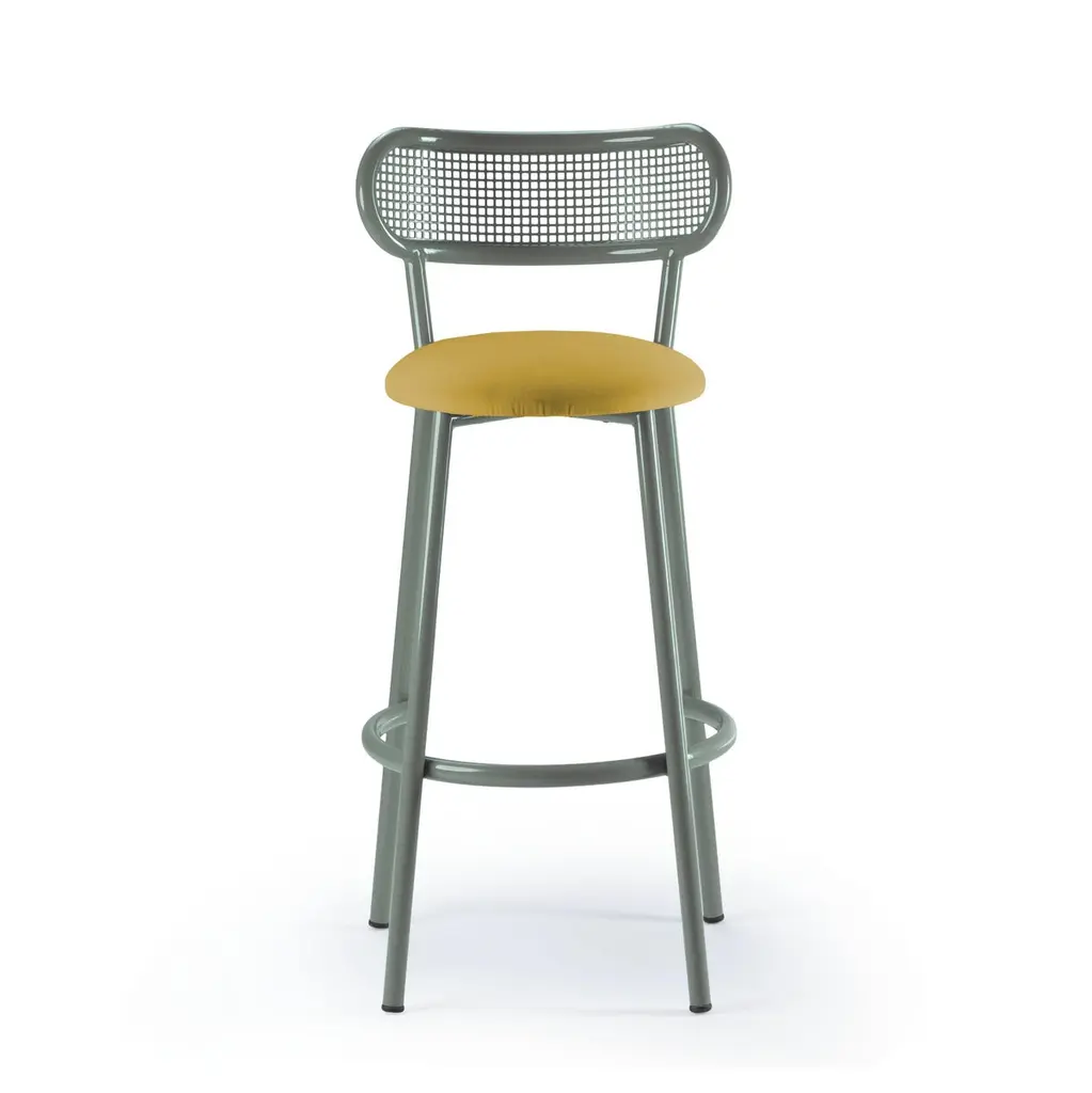 Louise Bar Chair With Salmon Structure, Perforated Steel Back And Upholstery