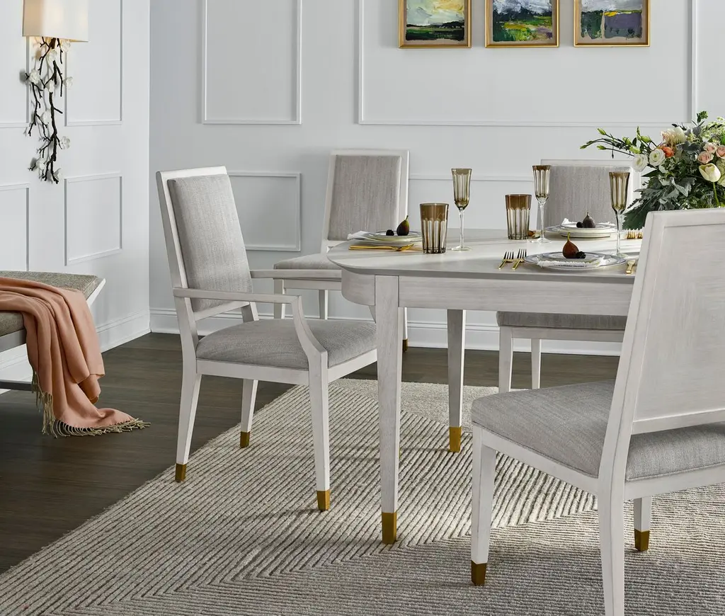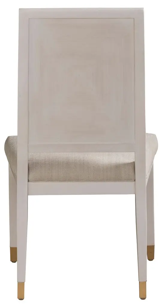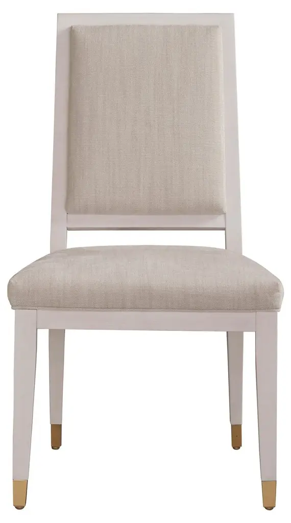 Golden ferrules add a glint of glamour to this side chair. Ample cushioning on the back as well as the seat encourages lingering at the dining table for after-dinner drinks and conversation.