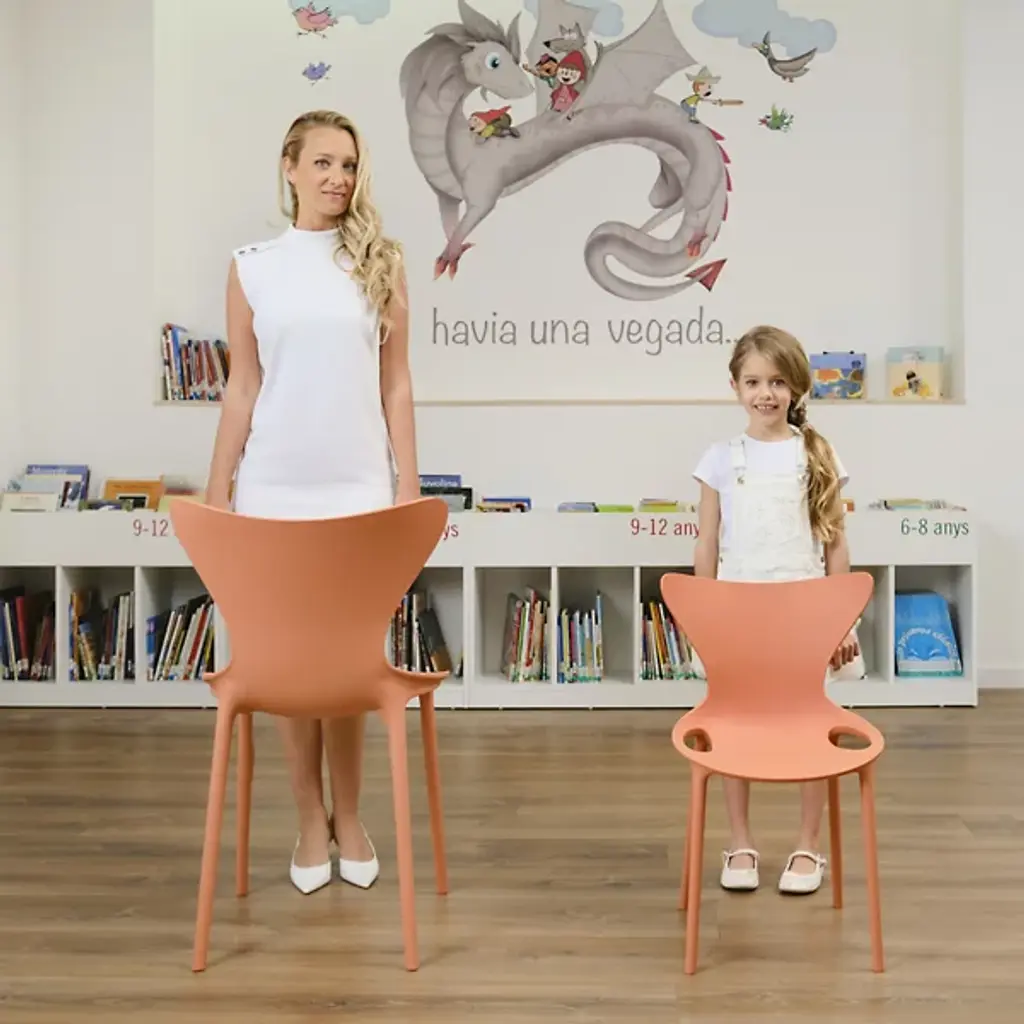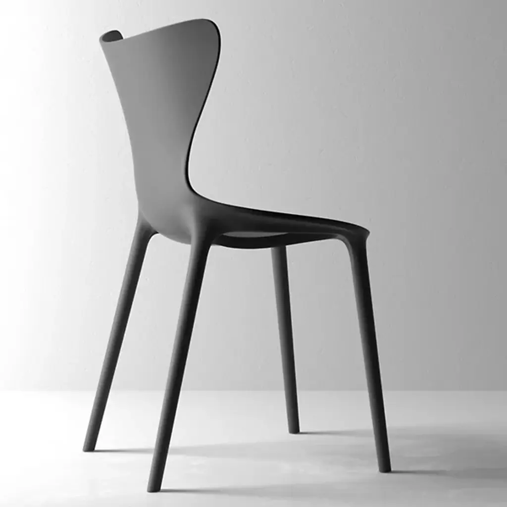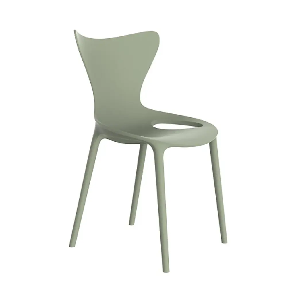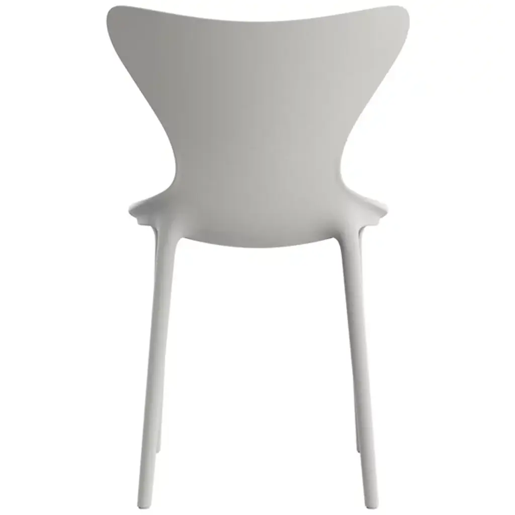The Love Outdoor Side Chair Set of 4 by Vondom was designed by Catalan designer Eugeni Quitllet and inspired by the concept of love. Aiming to capture the feeling that involves both body and soul, this sculptural chair plays with form and function, lasting design, and eco-consciousness. Made from polypropylene and reinforced with fiberglass manufactured by gas injection, this stackable piece is constructed from 100% recycled plastic from the Mediterranean Sea and is at home both indoors and out.