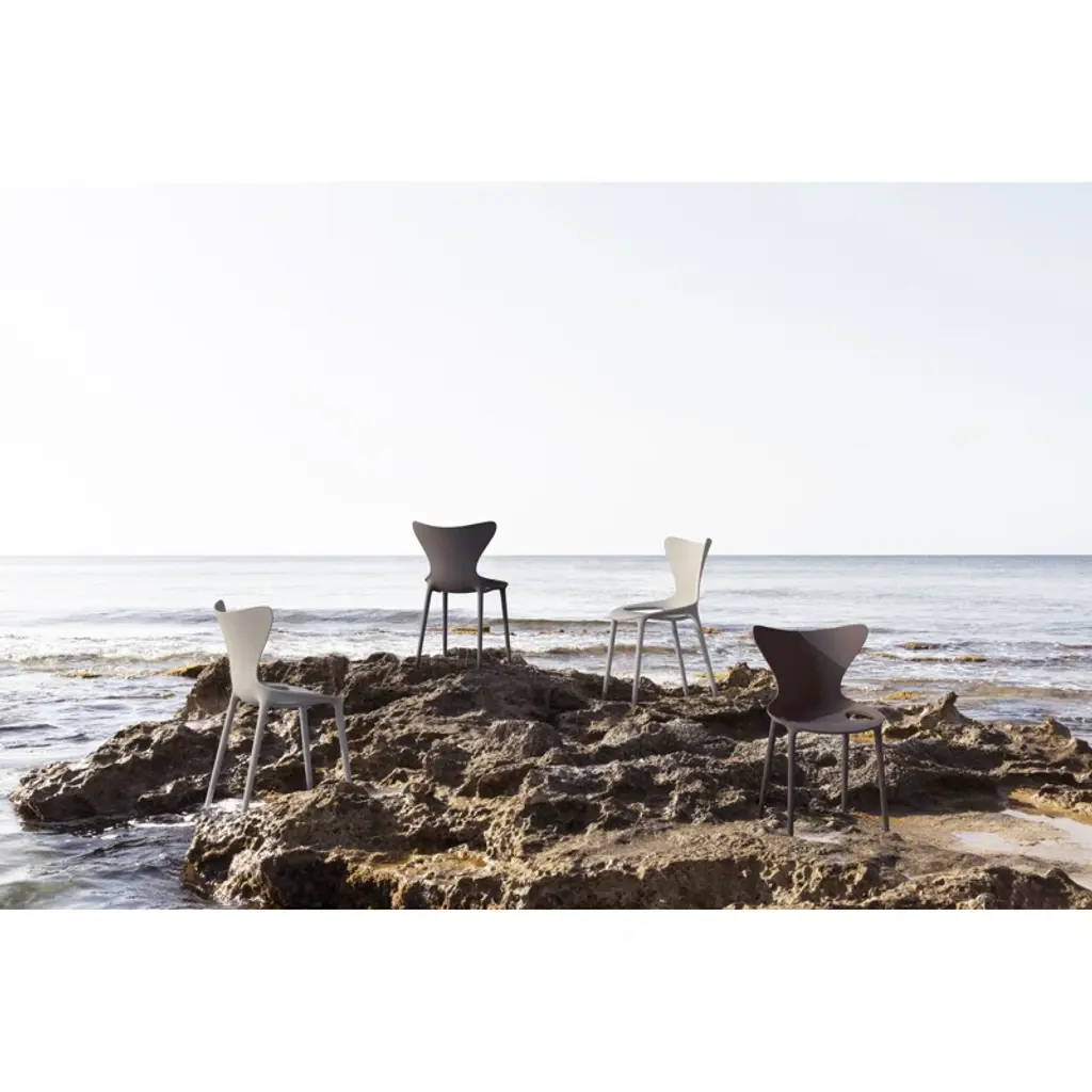 This collection is designed by Eugeni Quitllet and inspired by the concept of love, a feeling that involves body and soul, invisible to the human eye, but a wonderful embellisher of everything that surrounds us. The injection manufacturing technique allows each piece to have its own personality, through simple and curved silhouettes, which fit in an organic and natural way; this collection is suitable for both indoor and exterior spaces. In addition, this collection is part of our eco-intelligent commitment, condom revolution, based on the optimization of the natural resources of the Mediterranean Sea. Inspired by the sea´s breeze and textures, we present a sustainable alternative to the Love chairs, in exclusive colors such as the: Milos and Cala colors, from recycled plastics from the Balearic islands. And the manta tone was taken from recycled fishing nets. "Love is all we need…”