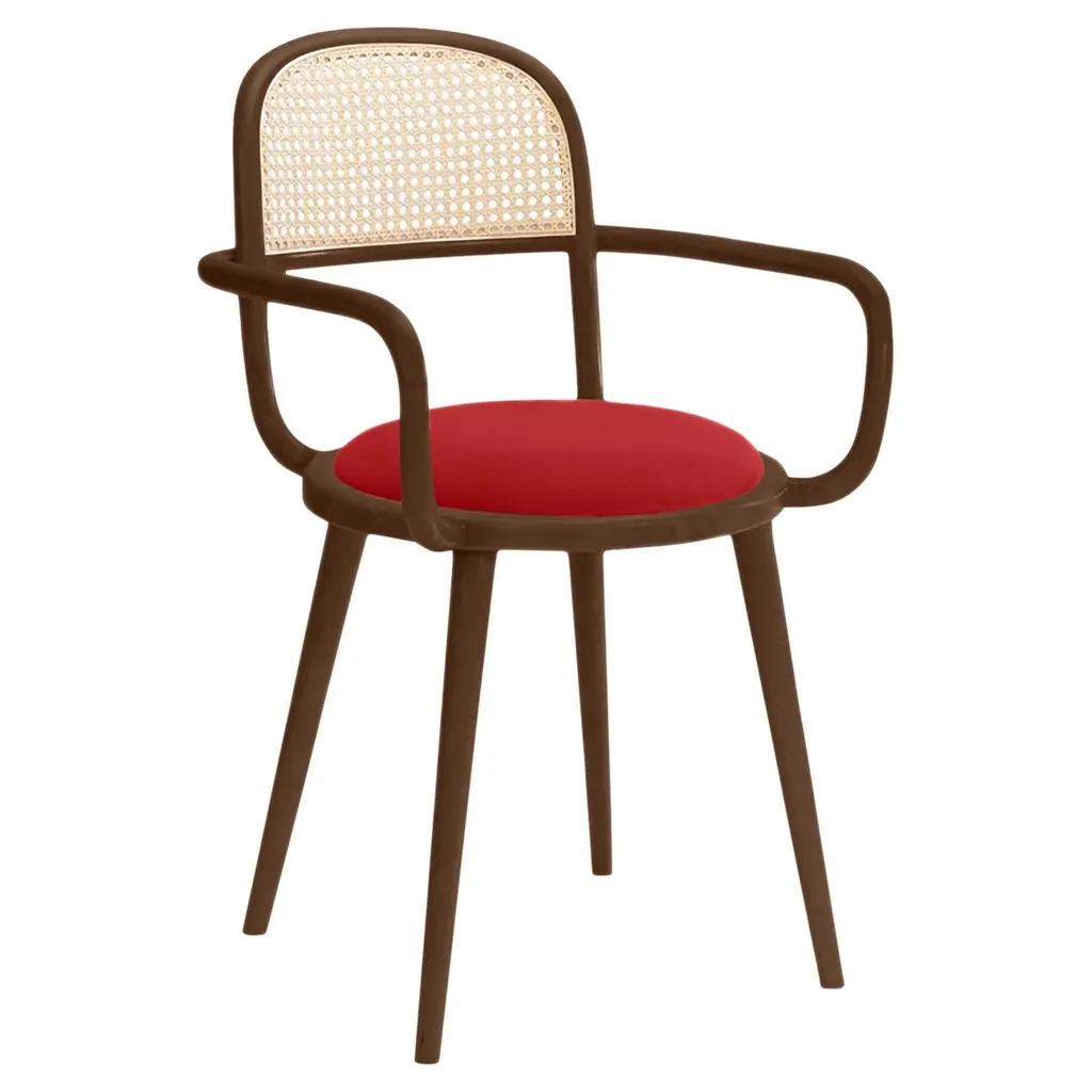 The Luc Dining Chair with his inviting curves and a comfortable seating. When it comes to Luc chair, the playing field is the cross-section where functional design and craftsmanship of the highest quality meet art. This chair is made of solid oakwood structure, natural rattan back and soft comfortable velvet upholstery.Luc Dining Chair is available in a number of different materials, finishes and combinations.MaterialsStructure : solid wood baseDimensionsW 22” x D 20” x H 31” - Seat height : 20”Pictured inSmooth 33 corn seat, Natural beech base structure.