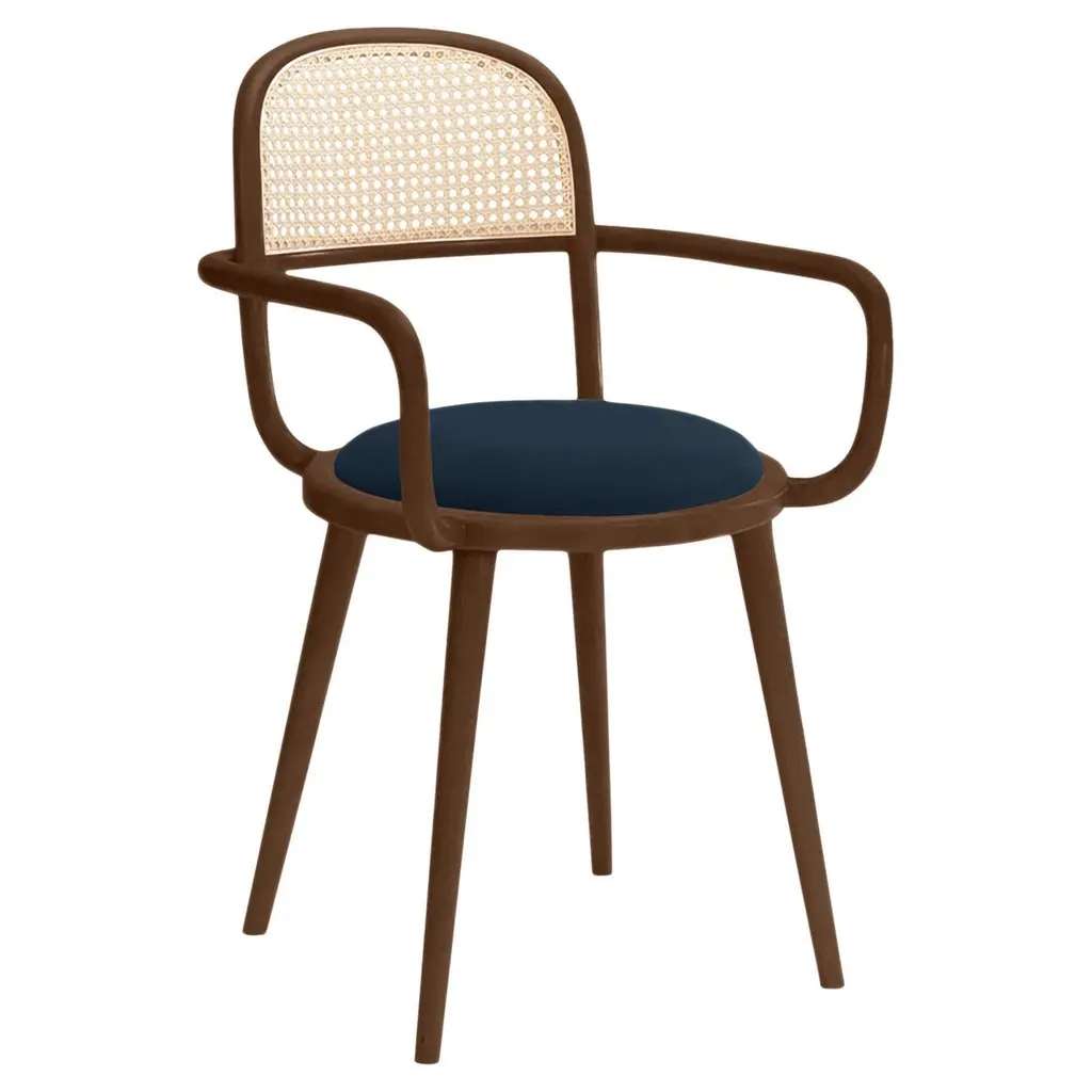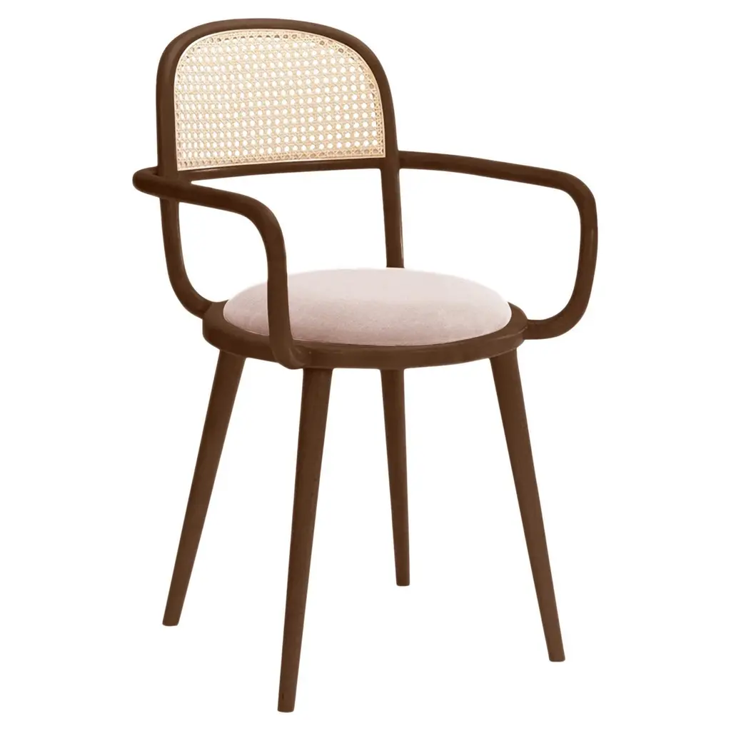 The Luc dining chair with his inviting curves and a comfortable seating. When it comes to Luc chair, the playing field is the cross-section where functional design and craftsmanship of the highest quality meet art. This chair is made of solid oakwood structure, natural rattan back and soft comfortable velvet upholstery.Luc dining chair is available in a number of different materials, finishes and combinations.MaterialsStructure : solid wood baseDimensionsW 22” x D 20” x H 31” - Seat height : 20”Pictured inSmooth 33 corn seat, Natural beech base structure.