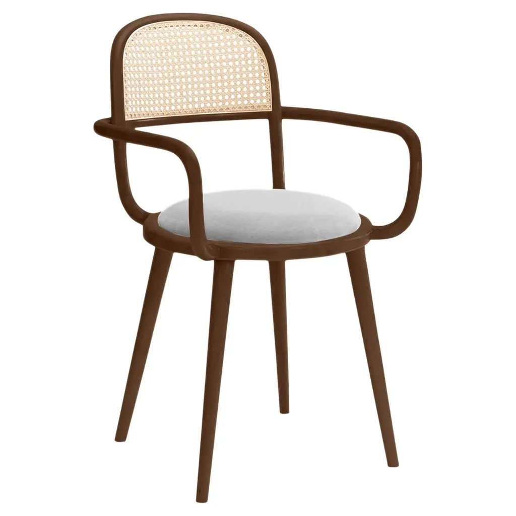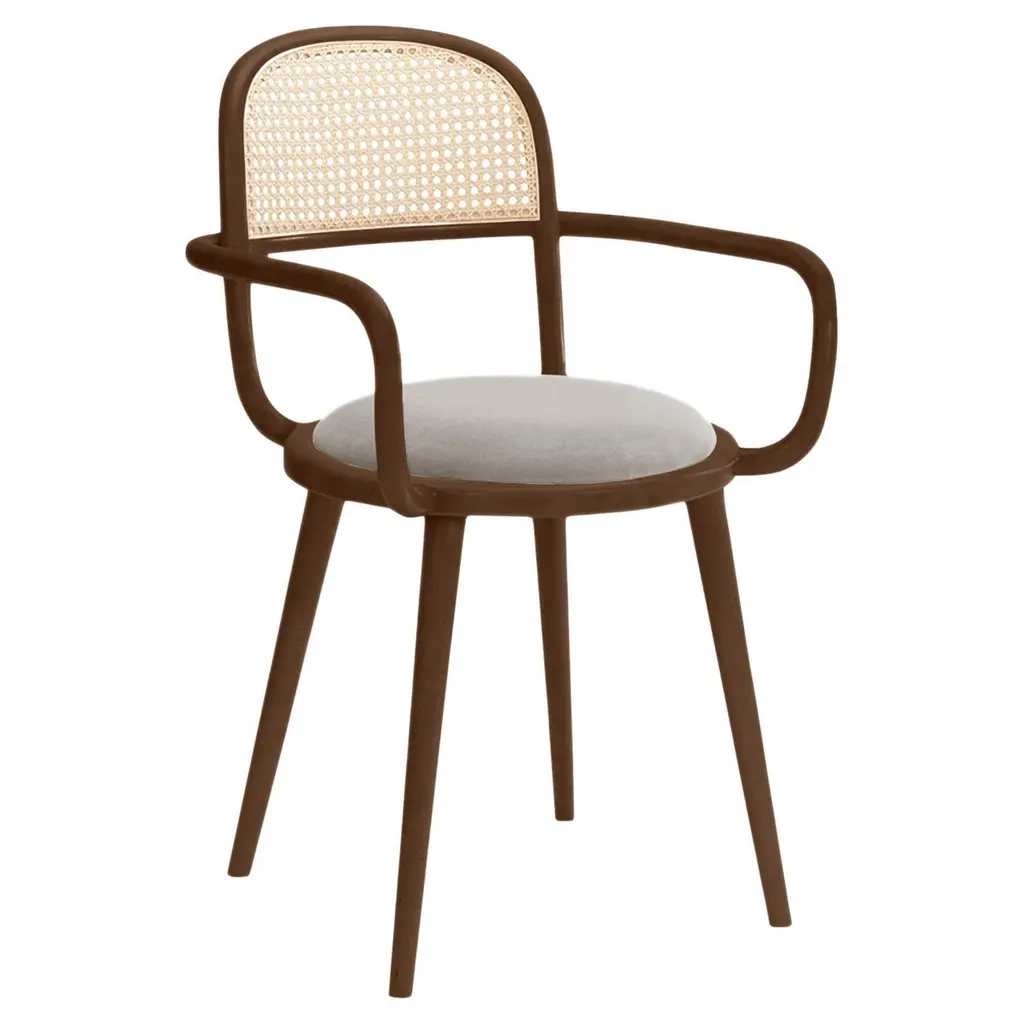 The Luc Dining Chair with his inviting curves and a comfortable seating. When it comes to Luc chair, the playing field is the cross-section where functional design and craftsmanship of the highest quality meet art. This chair is made of solid oakwood structure, natural rattan back and soft comfortable velvet upholstery.Luc Dining Chair is available in a number of different materials, finishes and combinations.MaterialsStructure : solid wood baseDimensionsW 22” x D 20” x H 31” - Seat height : 20”Pictured inSmooth 33 corn seat, Natural beech base structure.