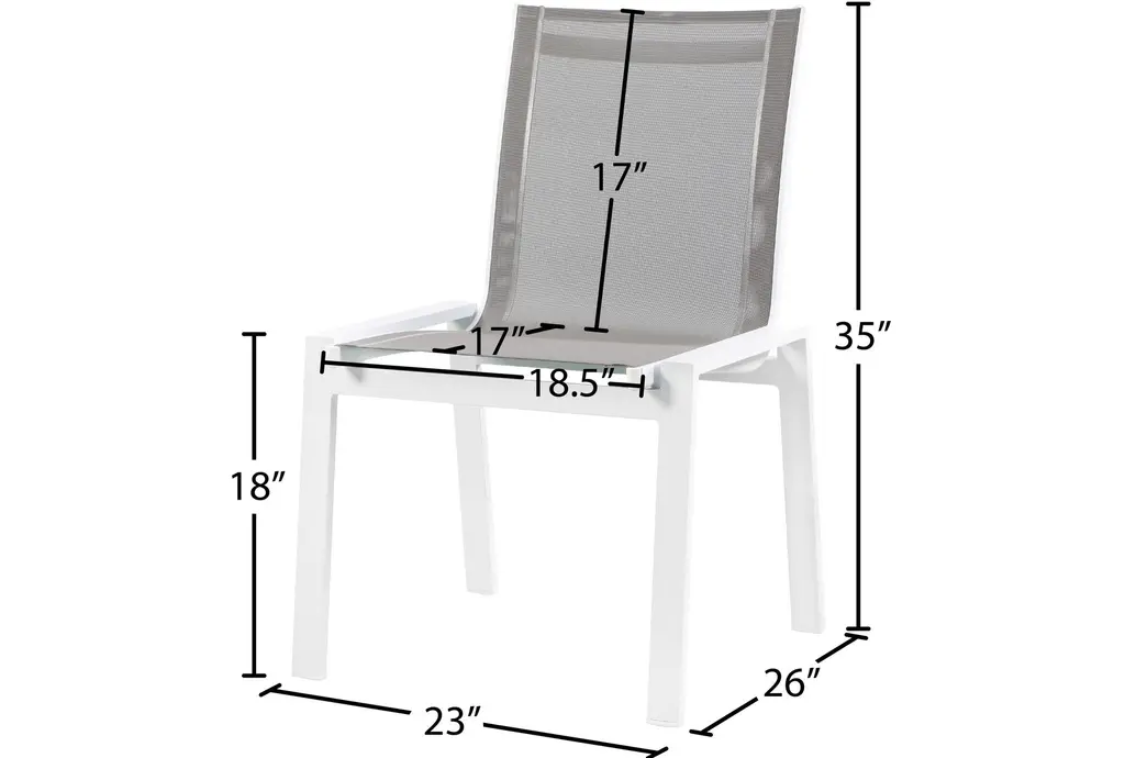 Enhance your outdoor space with the Lucas Grey Mesh Water Resistant Fabric Outdoor Patio Aluminum Mesh Dining Chair Set Of 2. These modern chairs offer a sophisticated touch to any patio, deck, or veranda with their sleek design and neutral grey color. The water-resistant mesh fabric and sturdy aluminum construction ensure durability and comfort for your outdoor gatherings.