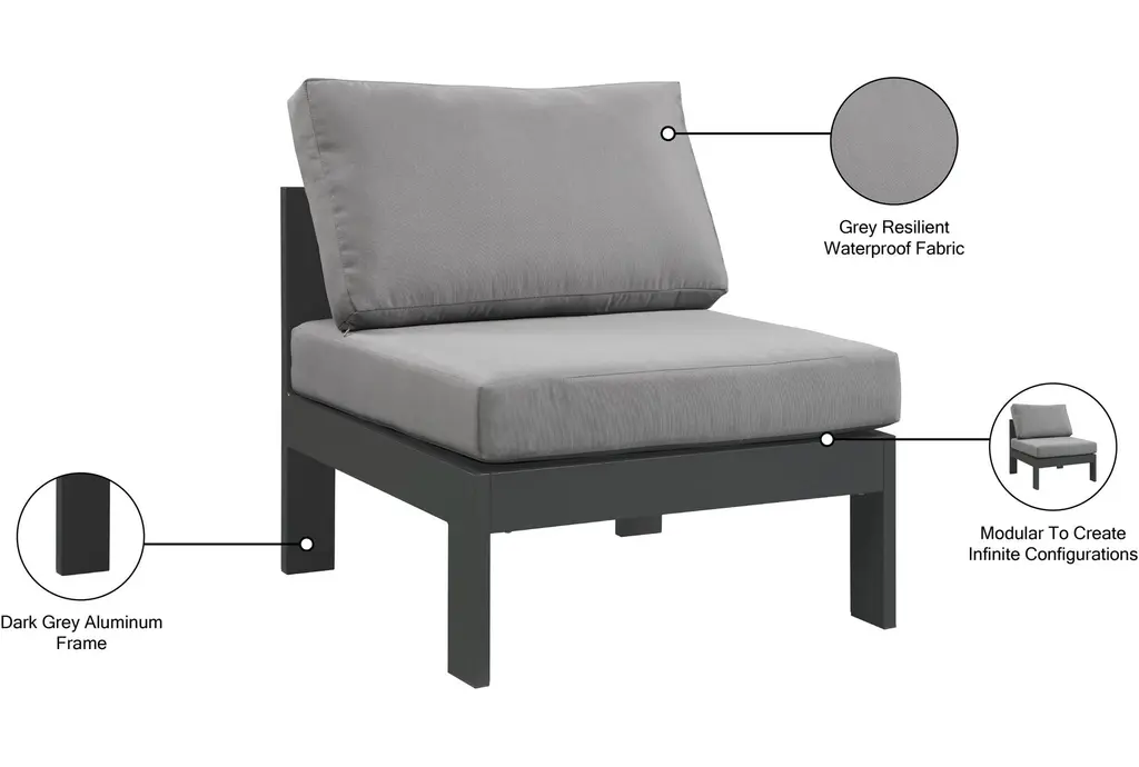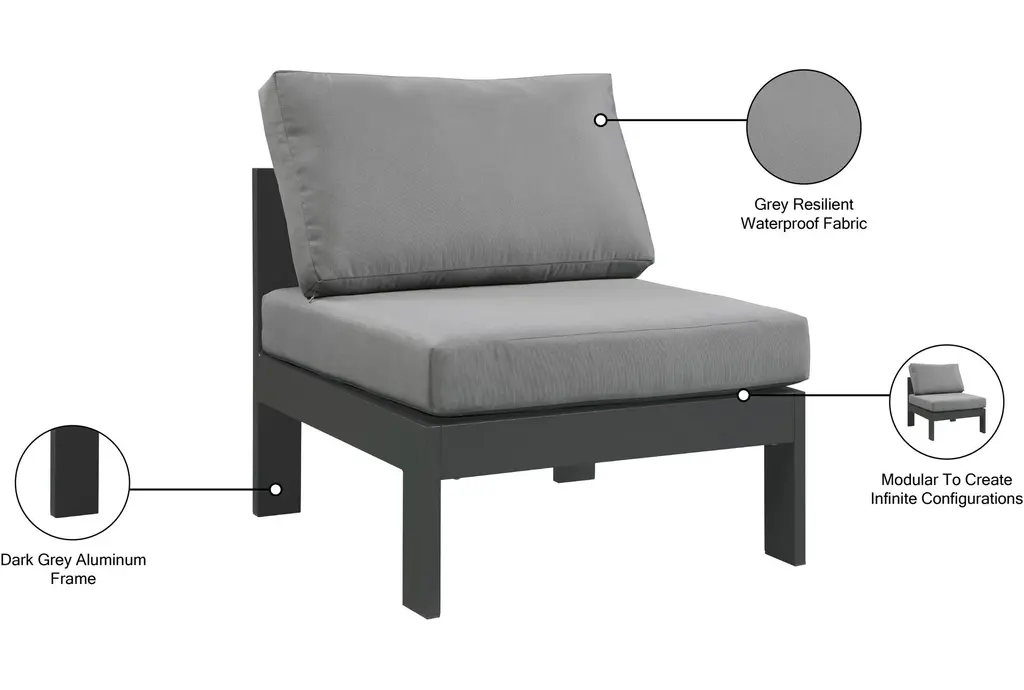 Lucas Grey Water Resistant Fabric Outdoor Patio Aluminum Armless Chair