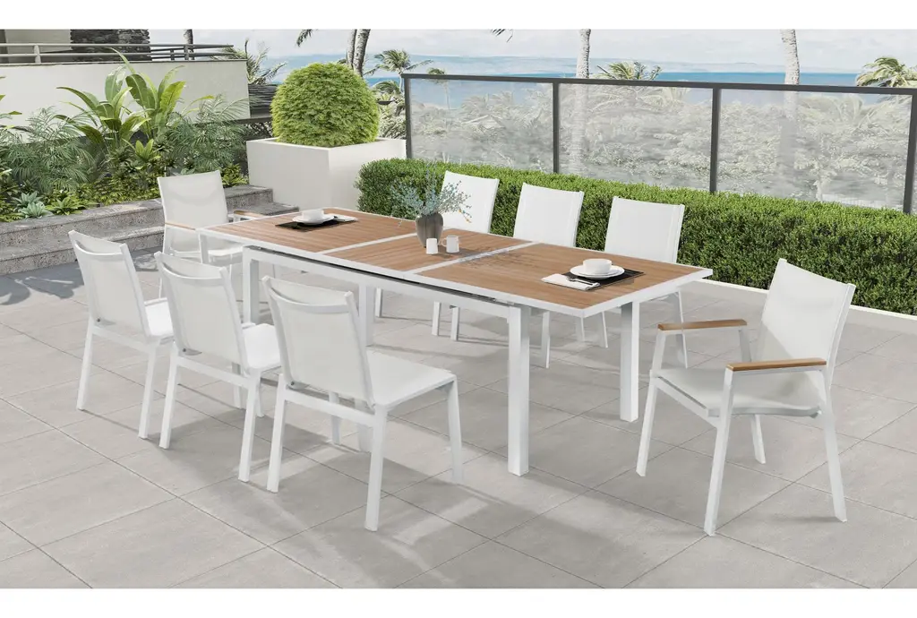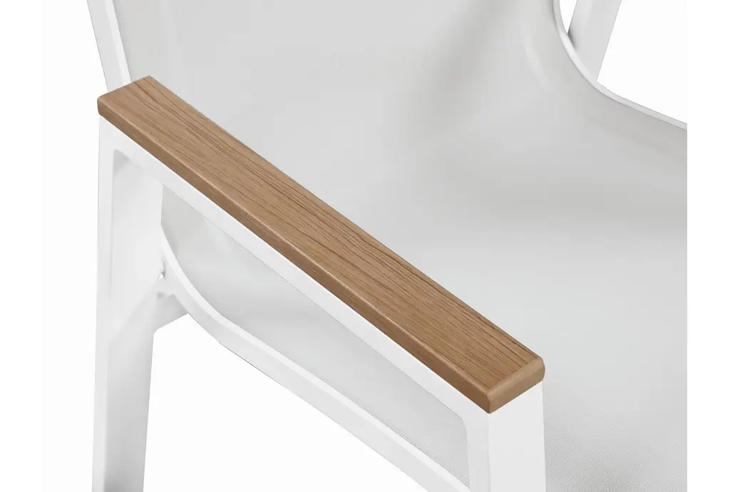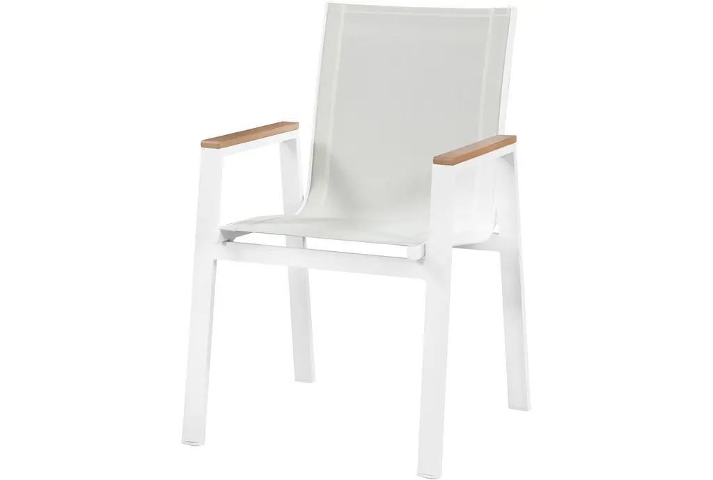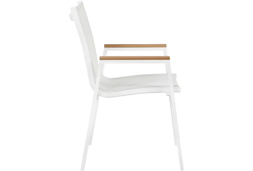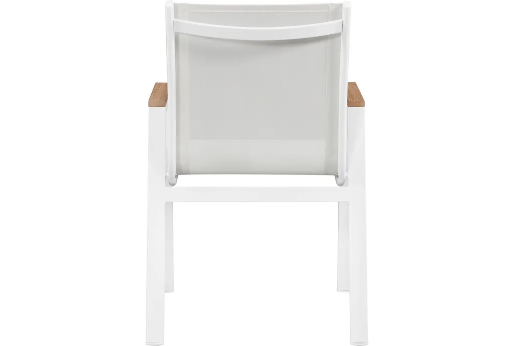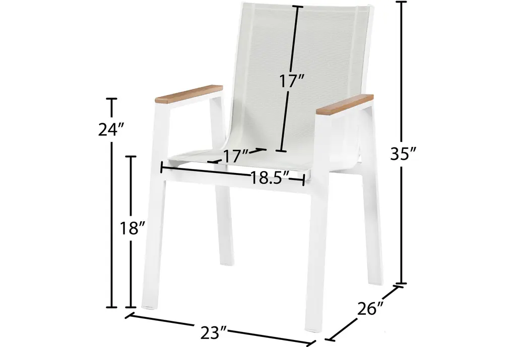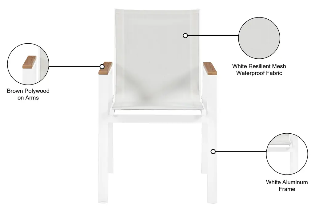 The Lucas White Mesh Water Resistant Fabric Outdoor Patio Aluminum Mesh Dining Arm Chair Set Of 2 is a perfect addition to any modern outdoor space. These chairs combine style and functionality with their sleek design and durable materials. Enjoy comfortable outdoor dining with these resilient and stylish chairs.
