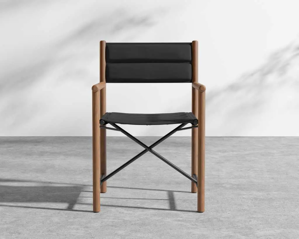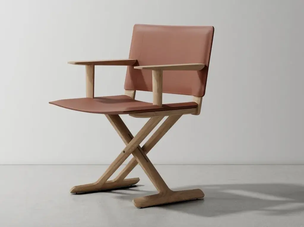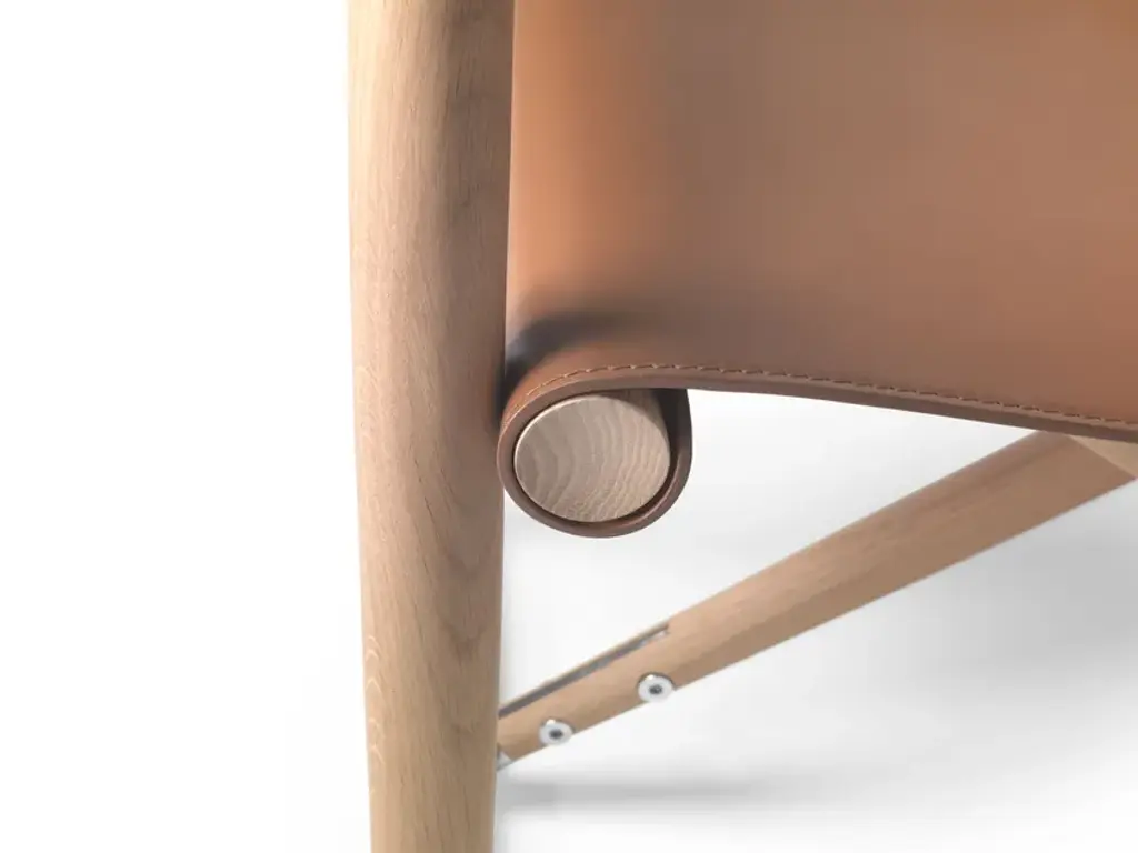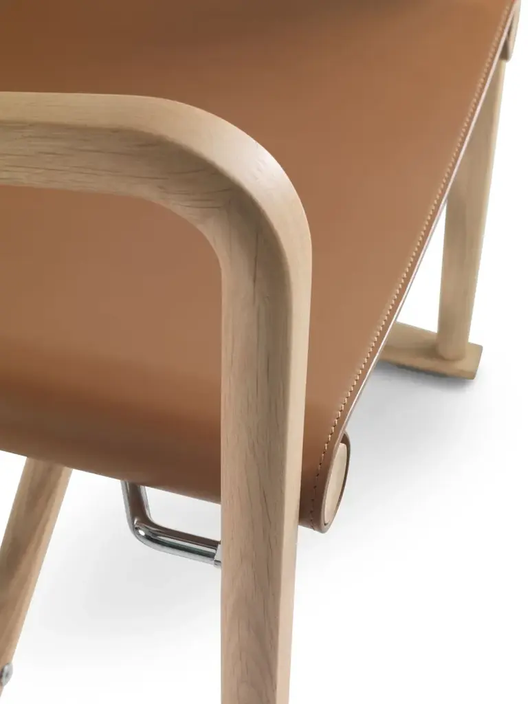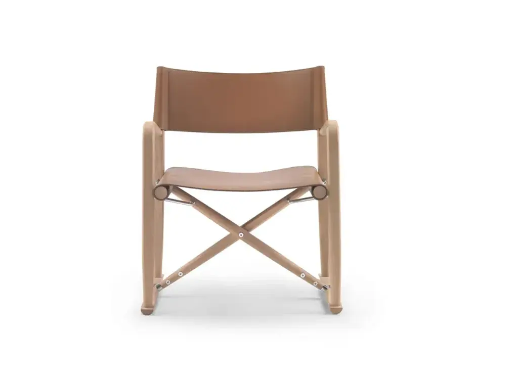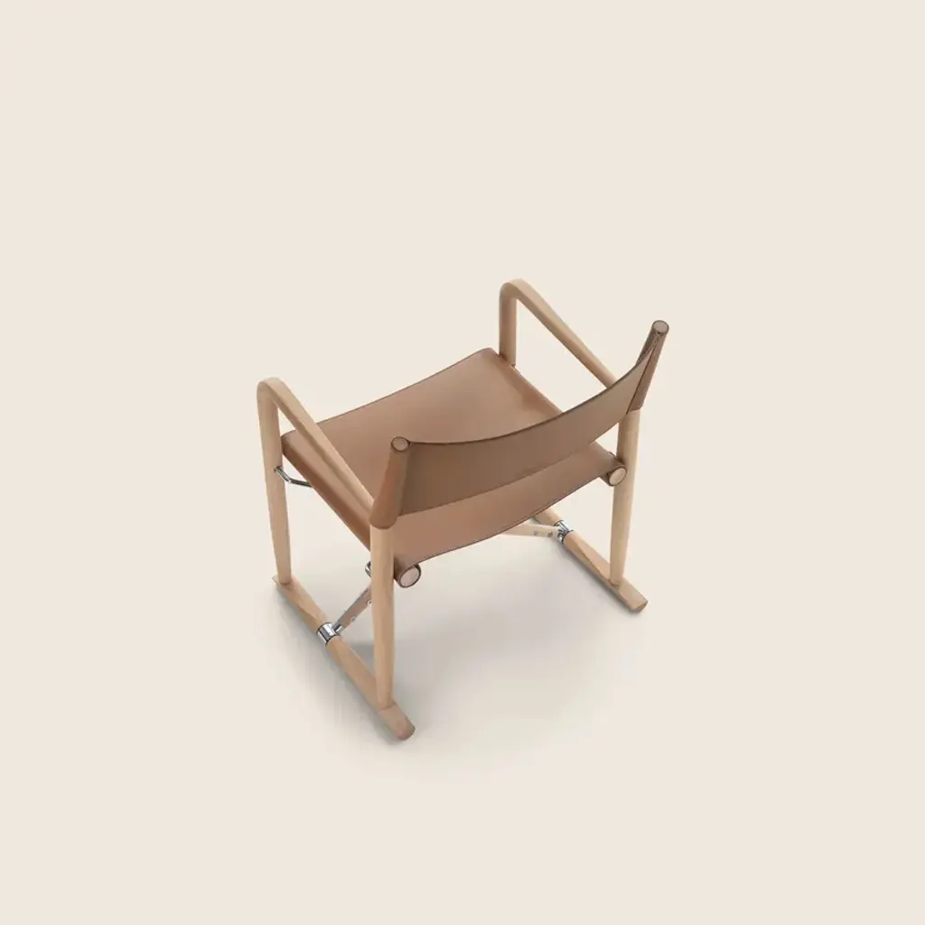 LUCHINO is an armchair with armrests.FeaturesFoldable structure: Made of solid canaletto walnut wood in raw, natural, or extra-stained finishes, or solid ash wood in natural, walnut-stained, teak-stained, wenge-stained, brown-stained, ebony-stained finishes, or solid oak wood in raw finish. Metal screws and joints in chrome, burnished, or matte titanium 710 finishes. Zinc die-cast hinges in chrome, burnished, or matte titanium 710 finishes.Seat/Backrest: Made of leather in the colors grey 5003, chestnut 5004, dark chestnut 5013, black 5005, olive 5006, Bulgarian red 5008, sand 5001, tobacco 5015.Feet: Resting on the ground with thermoplastic material tips.Luchino is a folding chair of proven functionality, boasting a centuries-old history.Originally used as a field chair, it later earned its definitive status as a director’s chair with the rise of the film industry, thanks to how easily it could be moved from one set to another.Its legendary qualities (comfortable, lightweight, and easy to carry) inspired Antonio Citterio and Flexform to offer a new interpretation of this timeless piece in the form of a small armchair.Crafted from hand-finished, turned solid wood with a leather seat and backrest, the chair is available in both dining and lounge versions. It features refined joints that allow it to be folded and transported effortlessly.Seemingly simple at first glance, a closer look at the Luchino armchair reveals the exquisite woodworking and meticulous attention to the metal details that control the folding mechanism.A harmonious blend of elegance and practicality, the dining version pairs easily with all tables in the collection, while the lounge version fits gracefully into any living space—whether standing alone or paired with Flexform sofas.
