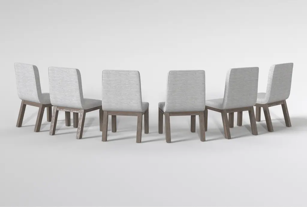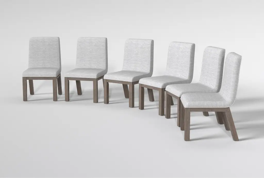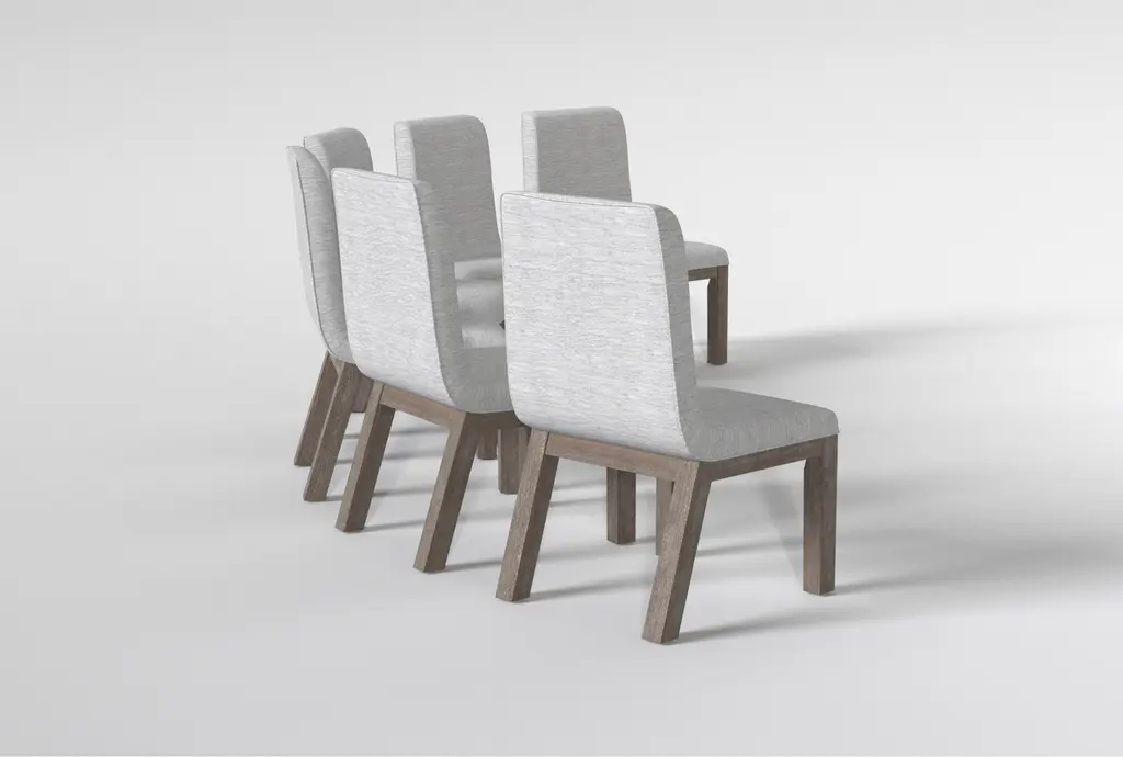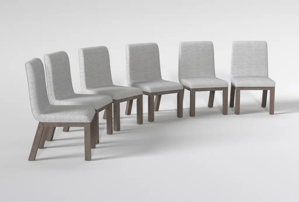 Enhance your dining experience with the Luis Natural Wood + Beige Upholstered Side Chair Set of 6. These armless chairs feature a rustic design that complements any dining room or kitchen. The cerused khaki color and acacia wood construction provide a neutral and inviting look.