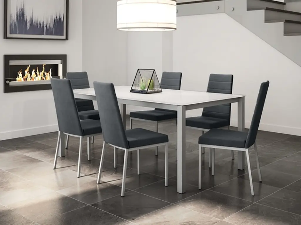 Shown in 24 Magnetite and DH Blizzard, other colors available. Please look under “description” for frame and fabric options/colors. For additional information, please message or call us at 410-381-7577 No fuss. No frills. For you, beauty resides in pure simplicity. From the back down to the legs, impeccably clean lines complement the loft style design of your interior. You’ll wish everything in your life had the flawless style of the Luna chair.