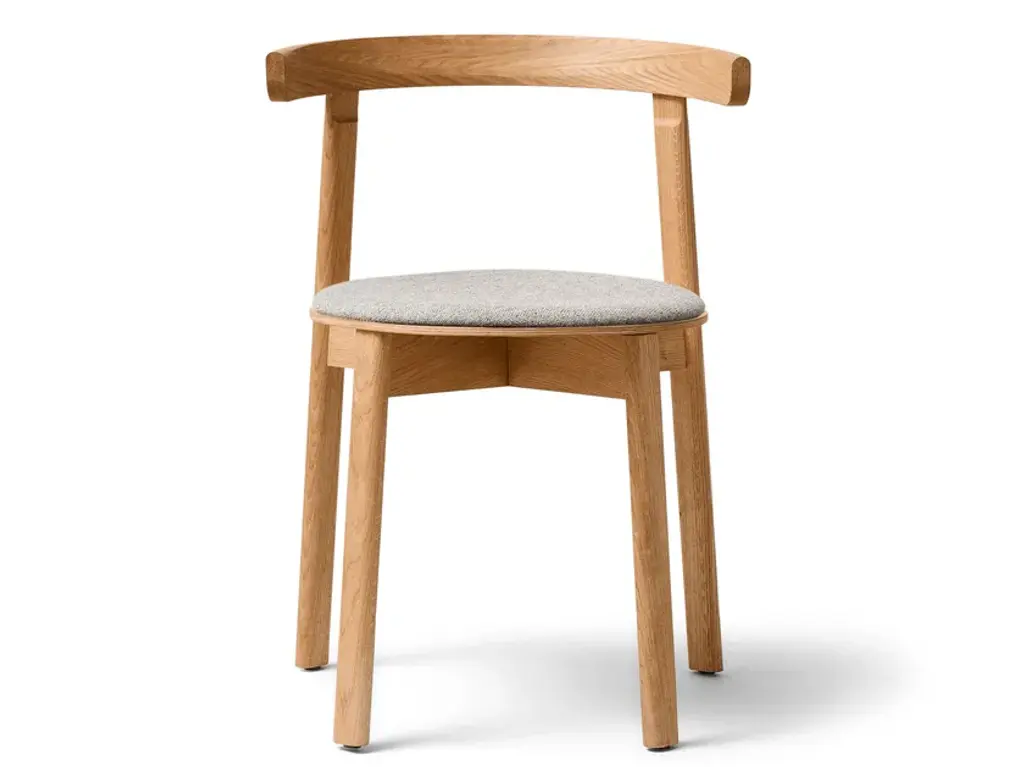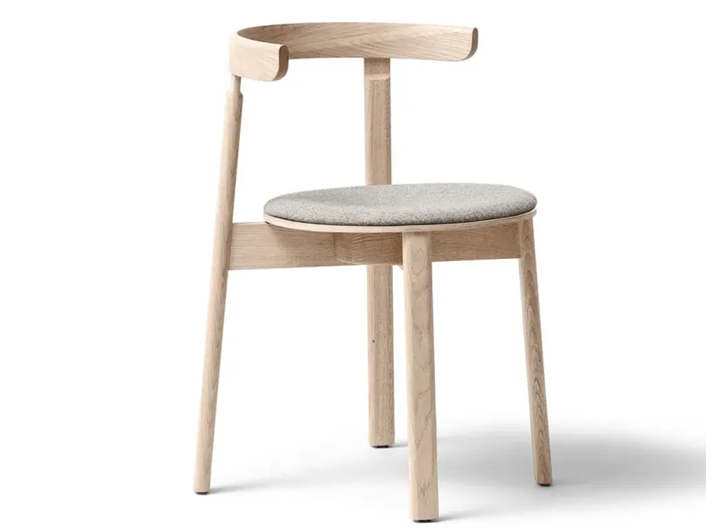 Lunar Chair is a versatile wooden dining chair with a great balance between functionality, aesthetics, and comfort. The characteristic rounded backrest with integrated armrest, crafted from a single piece of solid wood, ensures optimal comfort with both elbow and lower back support and enables a variety of seating positions. The wood seat rests on a strong X-shaped structure that provides optimal stability and supports the light expression. The curved wooden seat provides good seating comfort and a clear profile. The chair is stackable and can also be hung on the tabletop. These functional features, combined with its elegant, harmonious expression and durable construction, make Lunar Chair the perfect choice in work settings or home interiors."With Lunar Chair, I wanted to make a light and embracing chair. My goal was to make a chair that allows for changing seating positions and avoids locking the user in to one position. The round profiles are consistently repeated in all the components, giving the chair a coherent, feminine, and soft expression." – Jonas Herman, Herman Studio