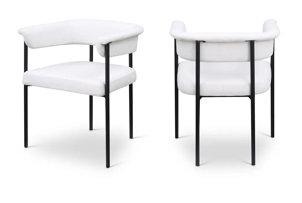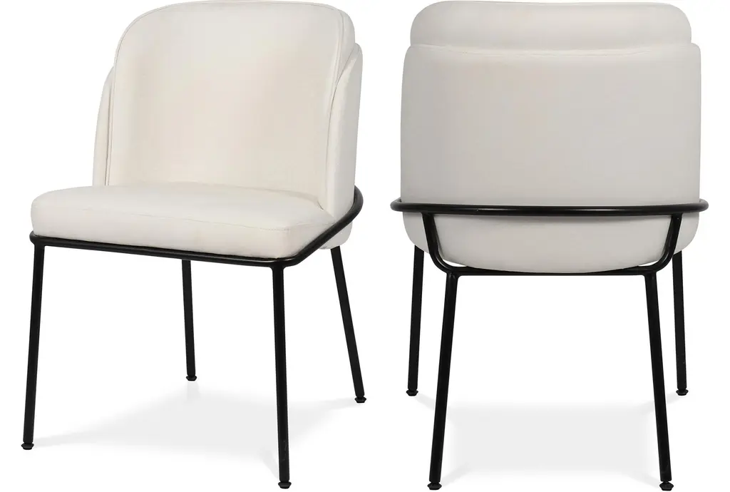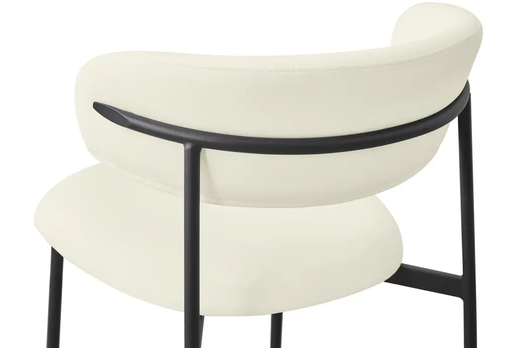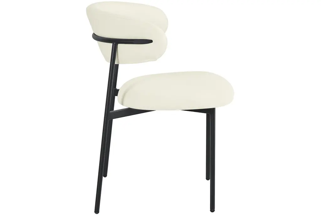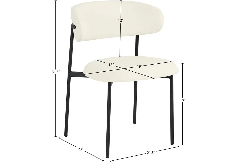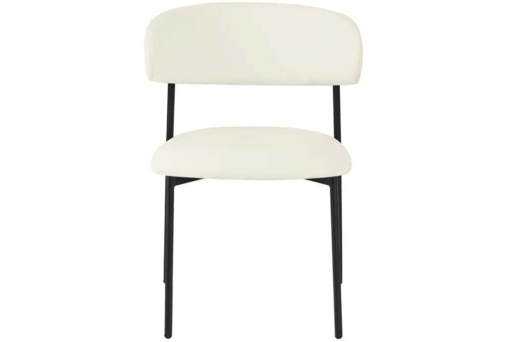 The Lupita Cream Vegan Faux Leather Dining Chair with Matte Black Finish Set of 2 brings modern sophistication to your dining room. The combination of vegan leather and matte black iron legs creates a stunning contrast that enhances any dining space. These armless chairs are designed for comfort and style, making them perfect for everyday dining and special occasions.
