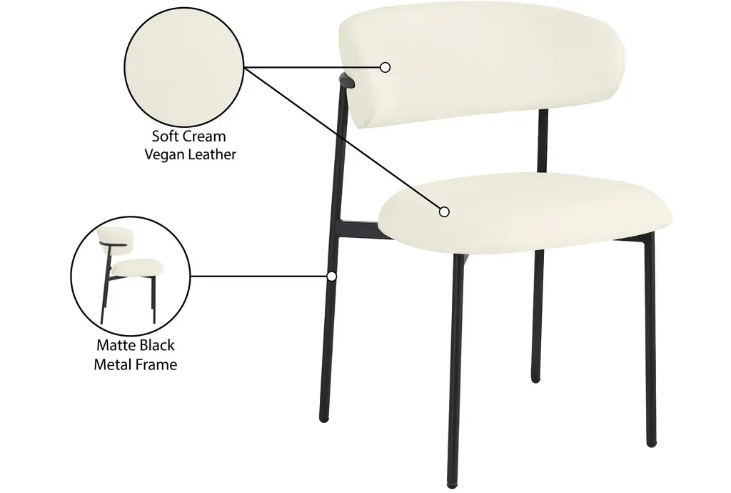 Lupita Cream Vegan Faux Leather Dining Chair With Matte Black Finish Set Of 2