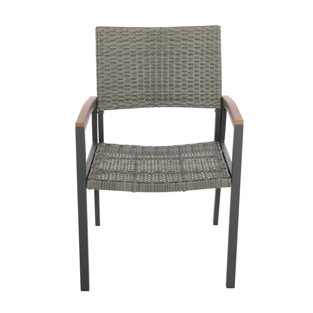 Luton Aluminum Outdoor Dining Chairs With Faux Wood Accents By Christopher Knight Home - Gray + Faux Rattan