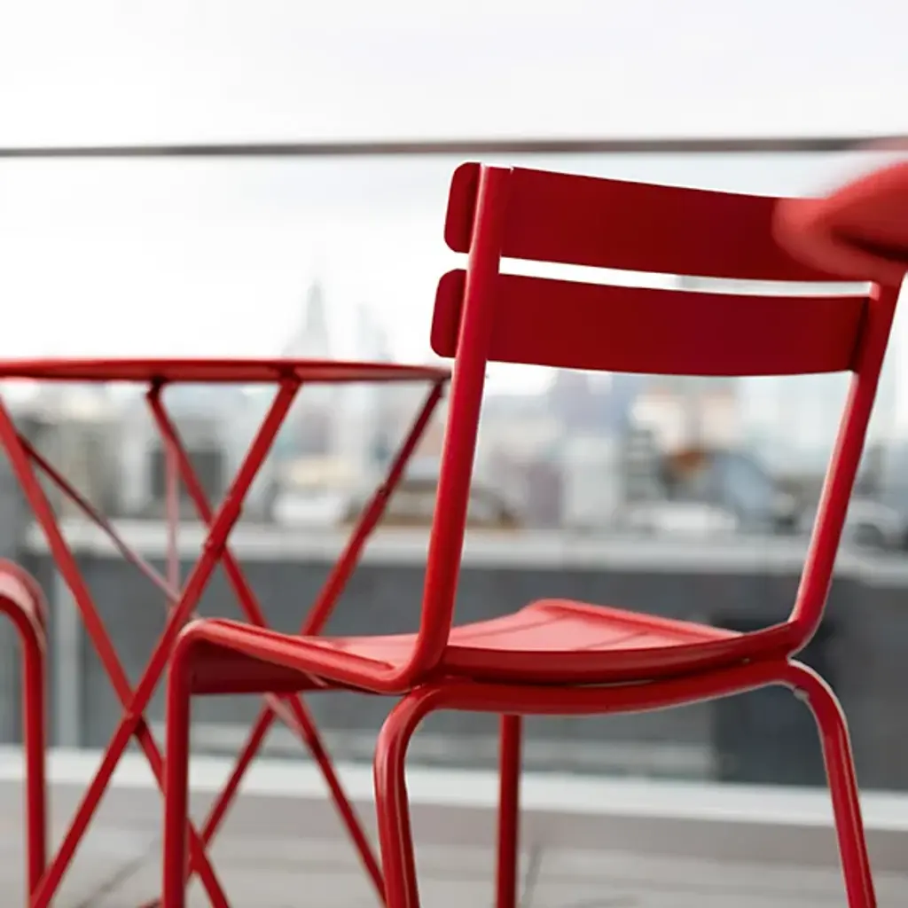 The Fermob Luxembourg Dining Side Chair, Set of 2 is a sleek yet durable outdoor dining option that will add a pop of color. Designed by Frederic Sofia as a modern interpretation of the iconic chairs found in Jardin du Luxembourg, the result is a distinctive piece that combines the resistance of aluminum with the comfort of curved seats. The curved aluminum slats on the seat and back offer a comfortable place to lounge and socialize, whether indoors or out. The minimal profile features aluminum construction finished with a durable and colorful UV resistant powder coat. Stackable for quick and easy storage, up to 6 high.