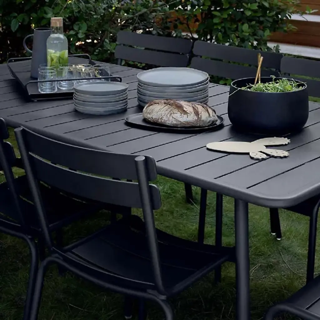 The Fermob Luxembourg Dining Side Chair, Set of 2 is a sleek yet durable outdoor dining option that will add a pop of color. Designed by Frederic Sofia as a modern interpretation of the iconic chairs found in Jardin du Luxembourg, the result is a distinctive piece that combines the resistance of aluminum with the comfort of curved seats. The curved aluminum slats on the seat and back offer a comfortable place to lounge and socialize, whether indoors or out. The minimal profile features aluminum construction finished with a durable and colorful UV resistant powder coat. Stackable for quick and easy storage, up to 6 high.