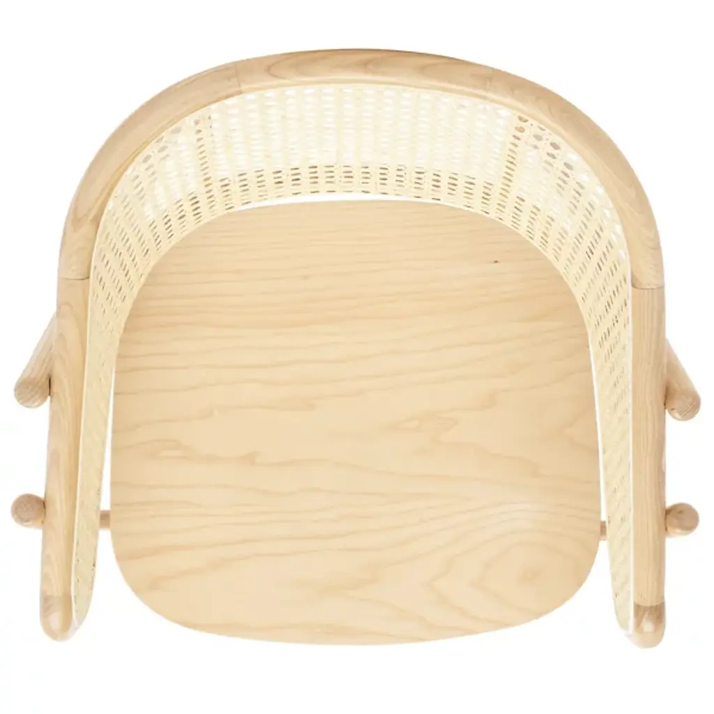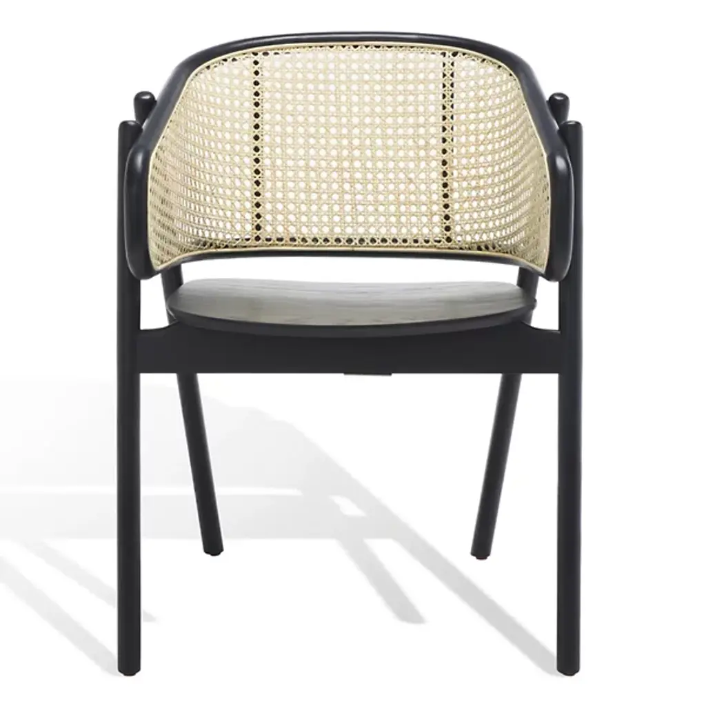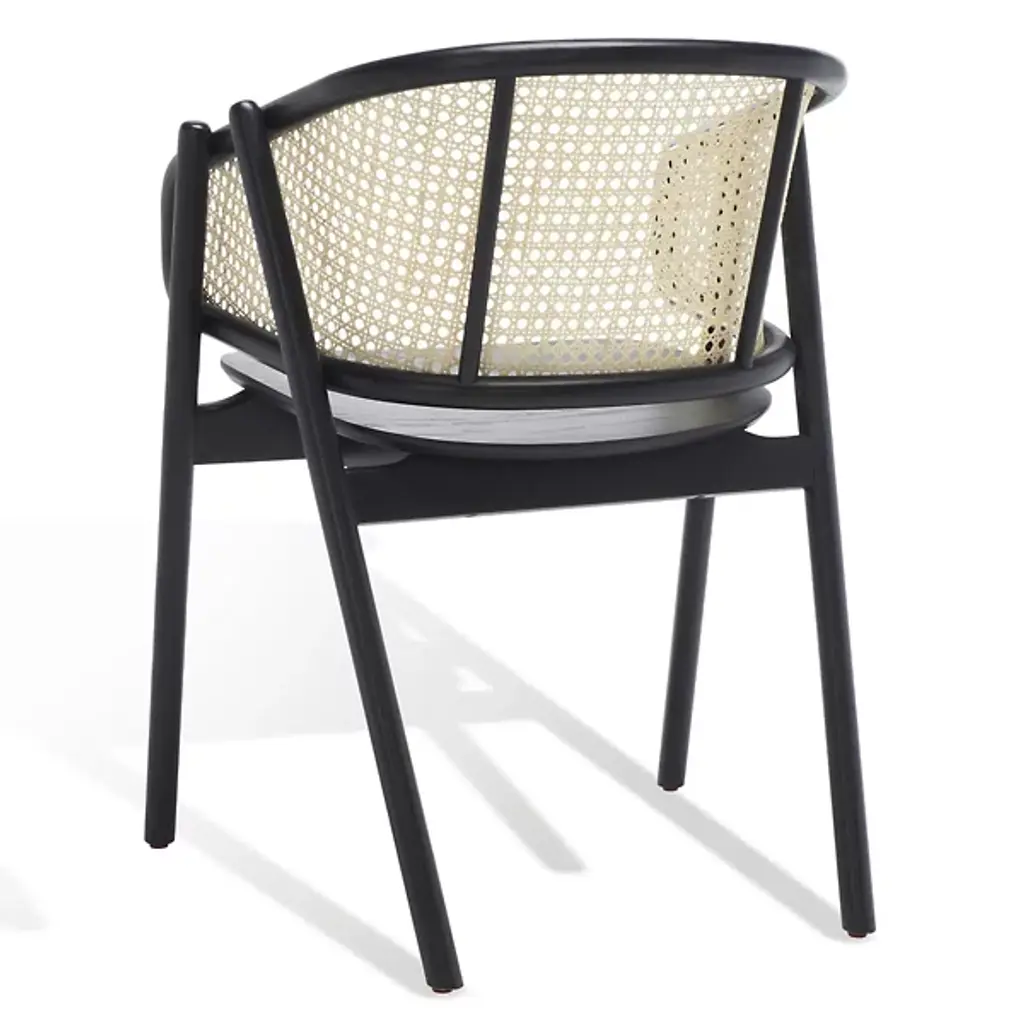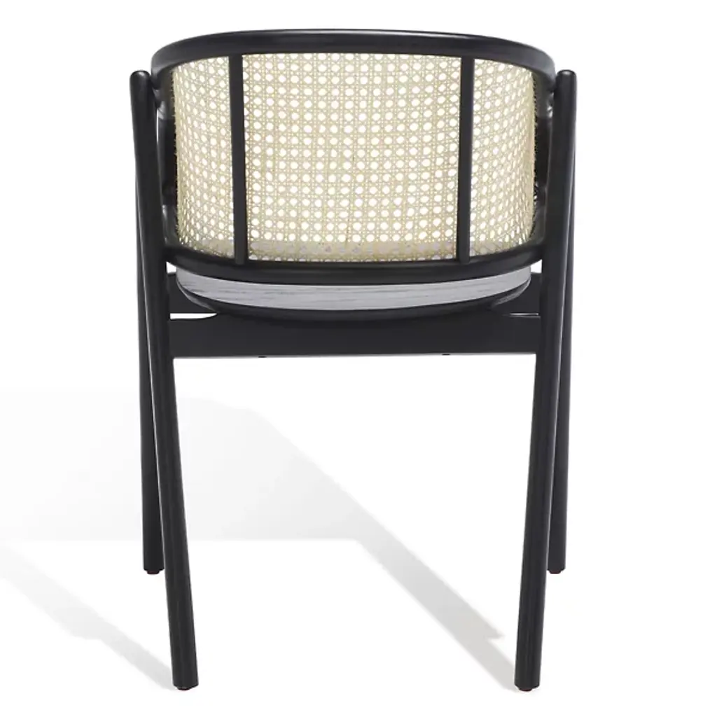 Experience warmth and coziness with the Mackenna Dining Armchair from Alder & Ore. This chair exudes a natural and inviting vibe with its warm rattan weave on the backrest. The contemporary design is highlighted by the curving, sheltered back, which offers both comfort and a stylish touch. The round, elliptical seat provides ample space to relax and enjoy meals, while the conical legs crafted in solid ash wood ensure stability and durability.