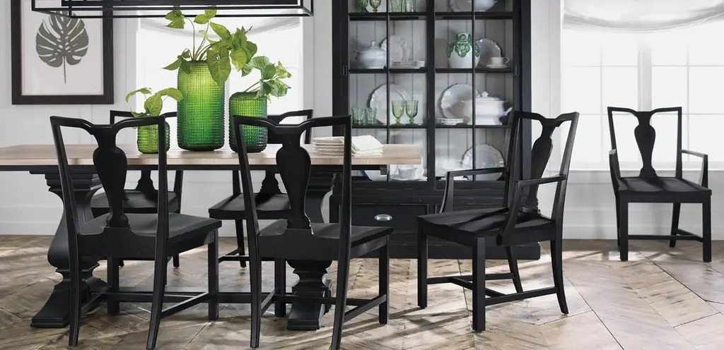 With just a few modernizing changes—squared legs, angular corners, and a solid, urn-shaped splat—we've made the formal-leaning Chippendale dining armchair equally comfortable in the farmhouse. Select the finish that sets the tone for your space, and we'll make your Maddox to order.