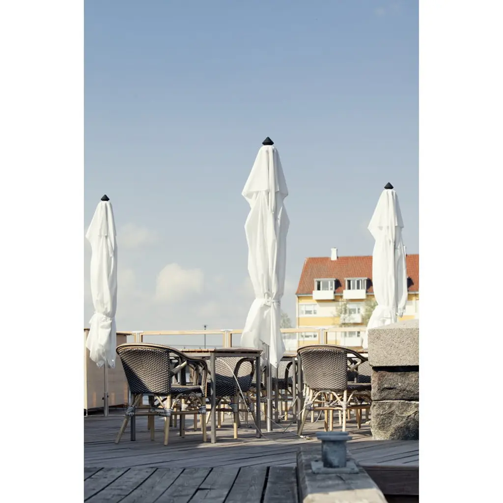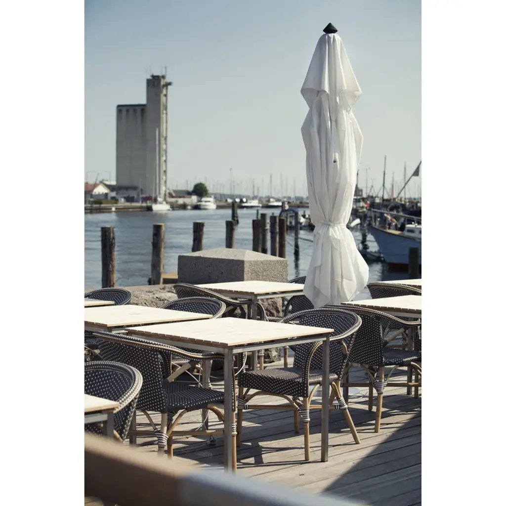Sika-Design’s Madeleine is a stackable chair that has been crafted from rattan and plastic weave. Inspired by classic Paris bistro chairs, Madeleine is perfect for café and restaurant use, and its functional beauty serves domestic dining rooms and patios as well. Thanks to the wide seat and armrests, Madeleine also makes a pleasant, lightweight lounge chair. Affaire collection by Sika-Design combines a traditional rattan frame with synthetic plastic weave ArtFibre that makes the seat durable and maintenance-free. Pieces of the Affaire collection have been crafted by hand and are designed for indoor use and covered summertime outdoor use.