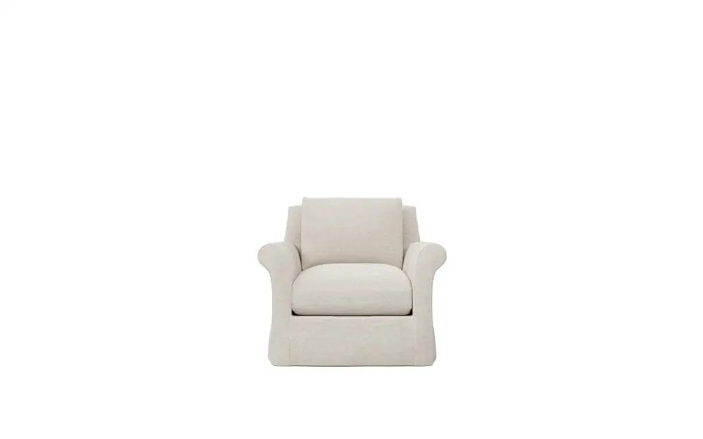 Gently curved lines form a casual silhouette on the Madeline slipcovered chair, a versatile piece that brings relaxed sophistication to any room. Soft yet supportive, the seat cushion is designed for supreme comfort, with a foam core surrounded by a blend of fiber, down, and feather fill. The loose back pillow and seat cushion make it easy to fluff and enliven the shape as needed. Choose from washable slipcover fabrics in a variety of serene hues.