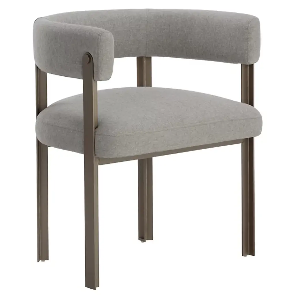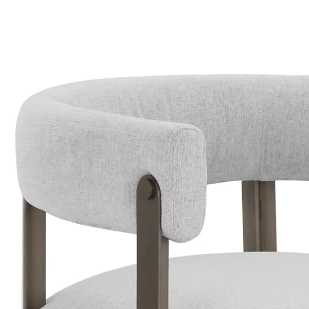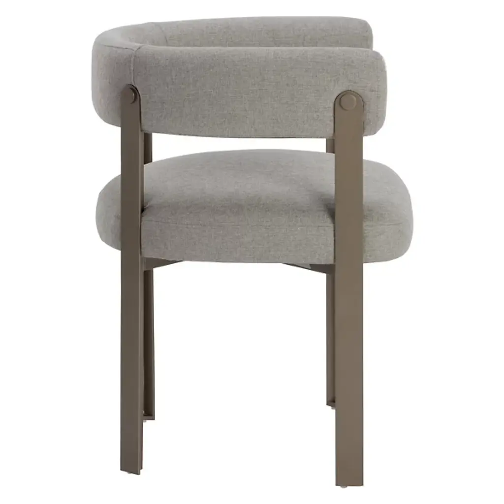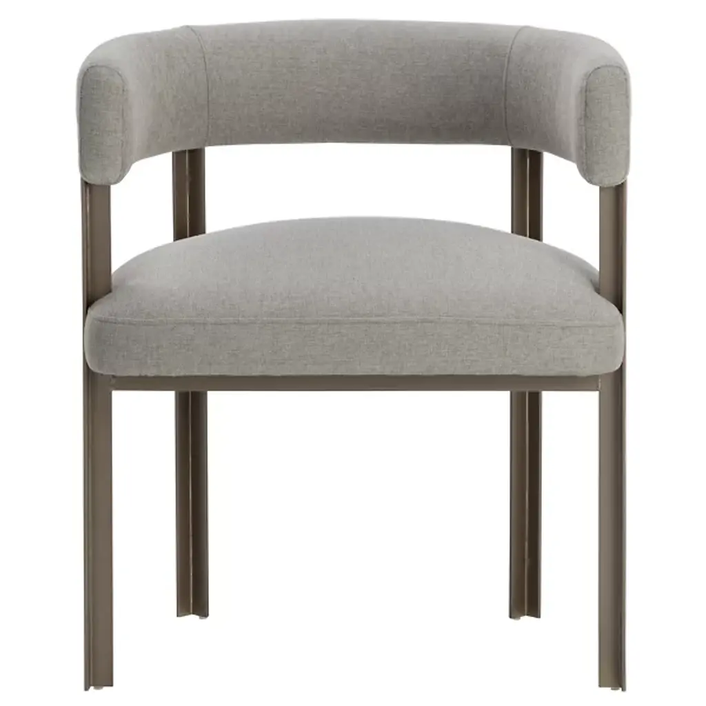 The Mae Dining Armchair by Sunpan epitomizes style and elegance with this stunning dining armchair. Its design showcases a contemporary barrelback seat, upholstered in exquisite Ernst Sandstone fabric, resting atop a powder-coated steel base with a lustrous gold finish. This chair effortlessly combines modern aesthetics with luxurious comfort, making it the perfect addition to your dining space. Elevate your dining experience with this tastefully designed and beautifully crafted dining armchair.